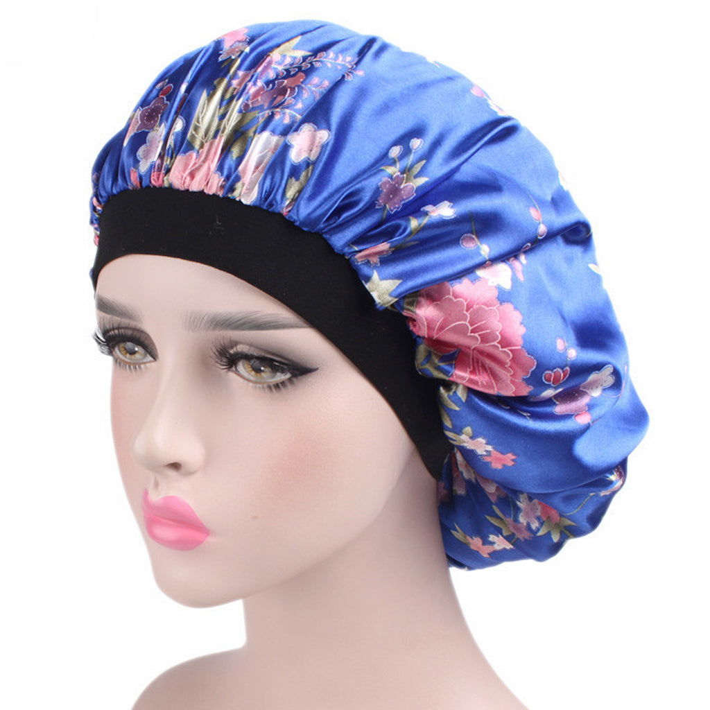 Womens Chemo Hat Salon Night Sleep Cap Turban Headwear for Cancer Royal Blue