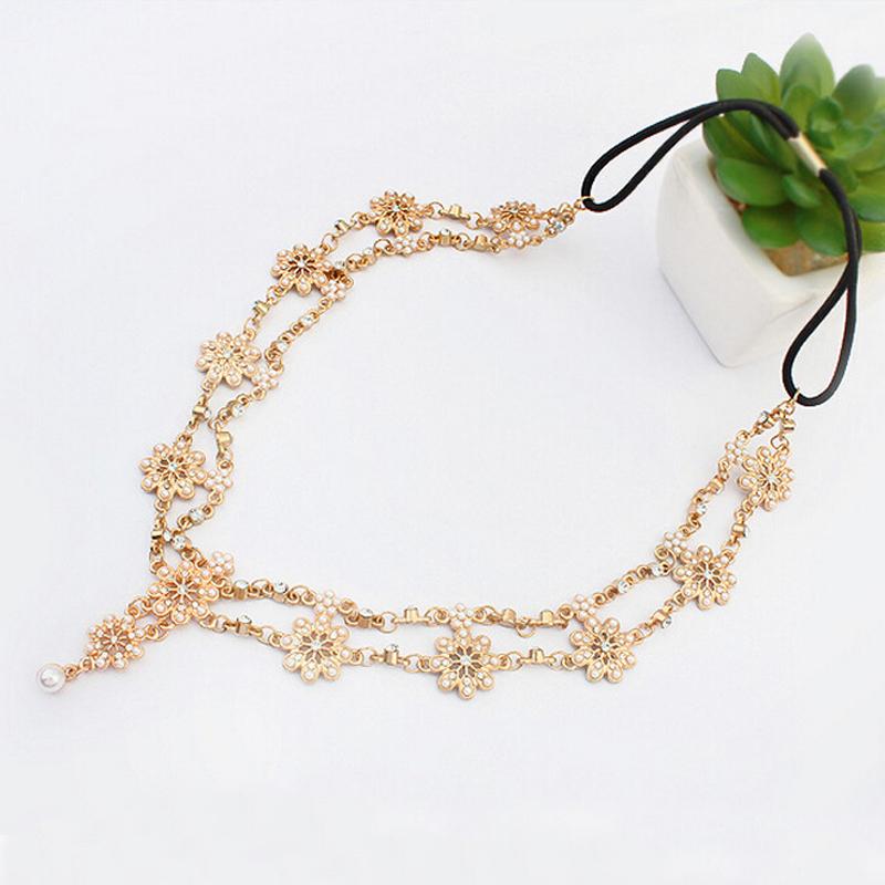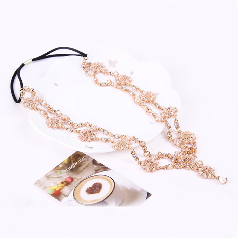 • Fashion crystal faux pearl beaded flower headband