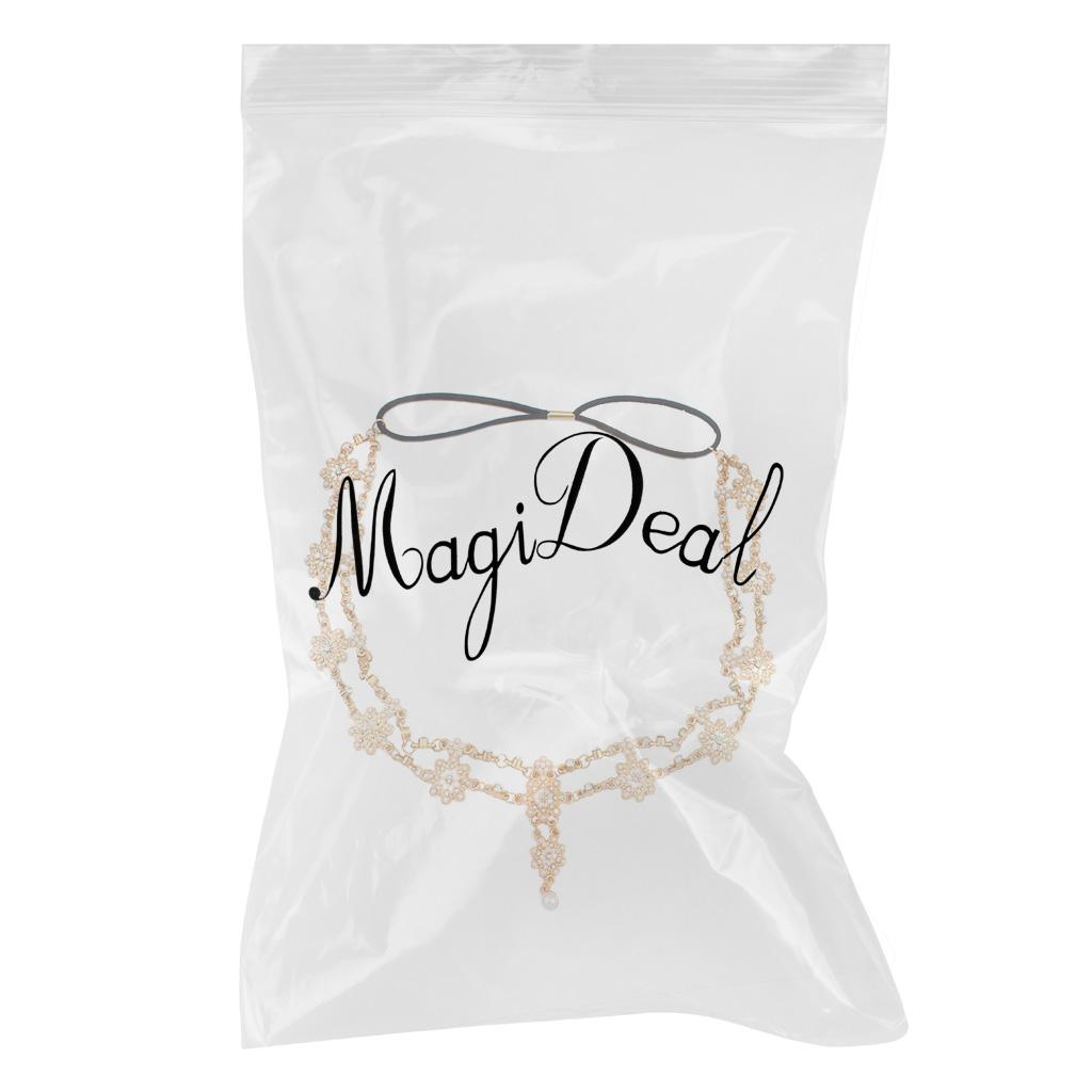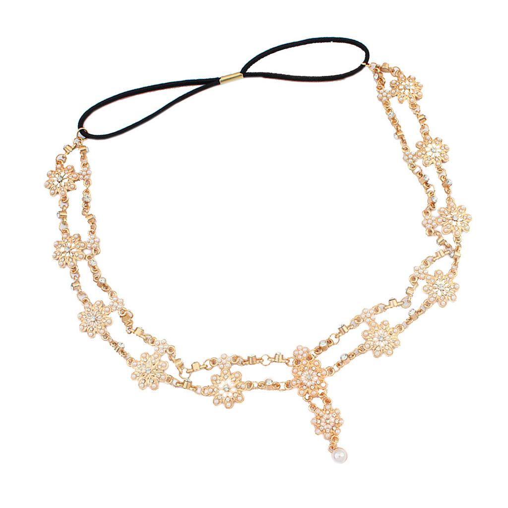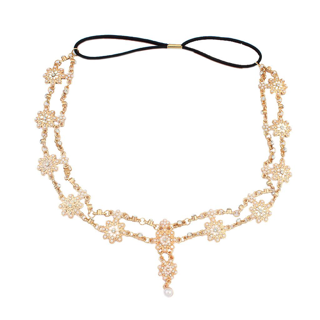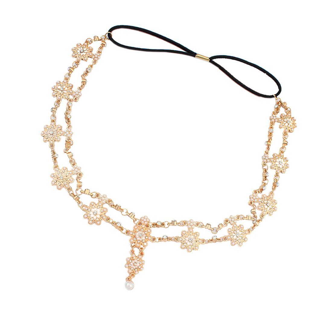 Womens Elegant Gold Crystal Faux Pearl Beaded Headband Hair Accessory