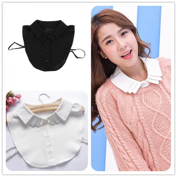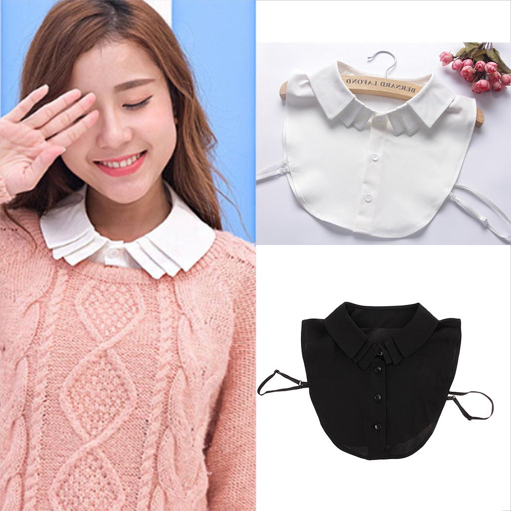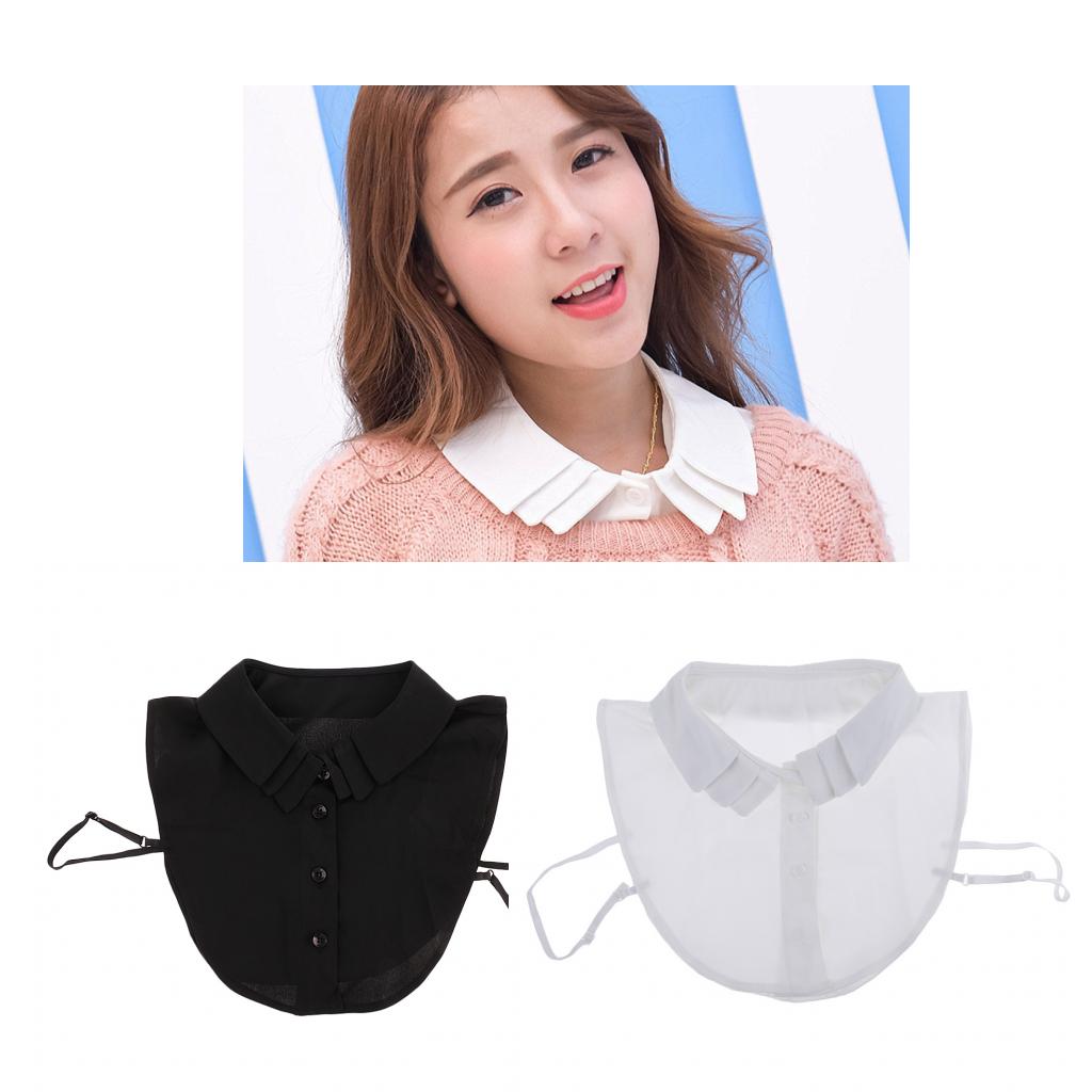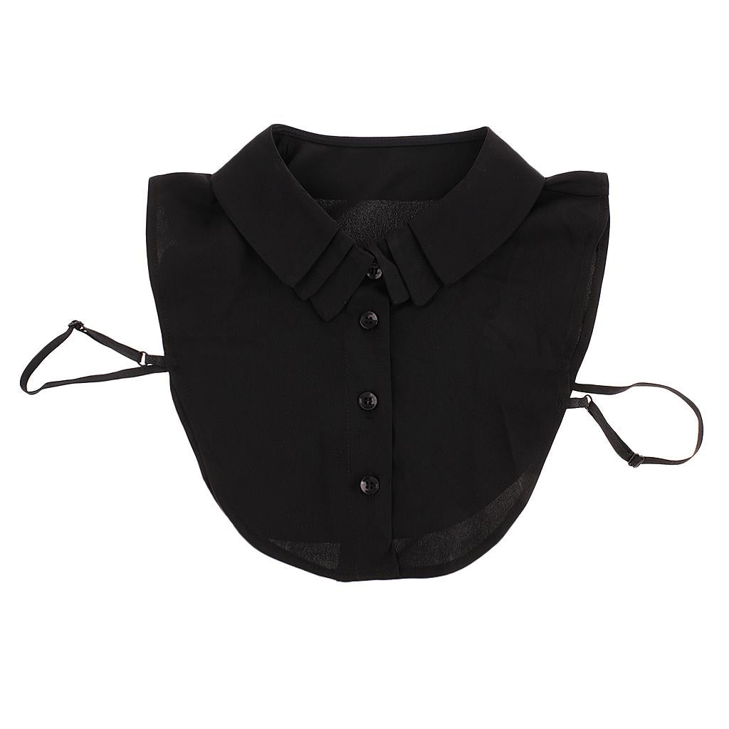 Womens Fake Collar Removable False Blouse Embroidered Chiffon Black