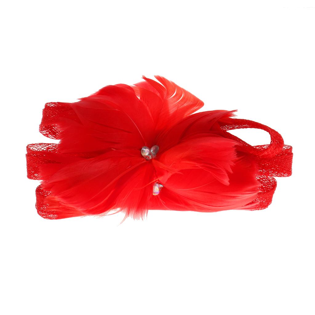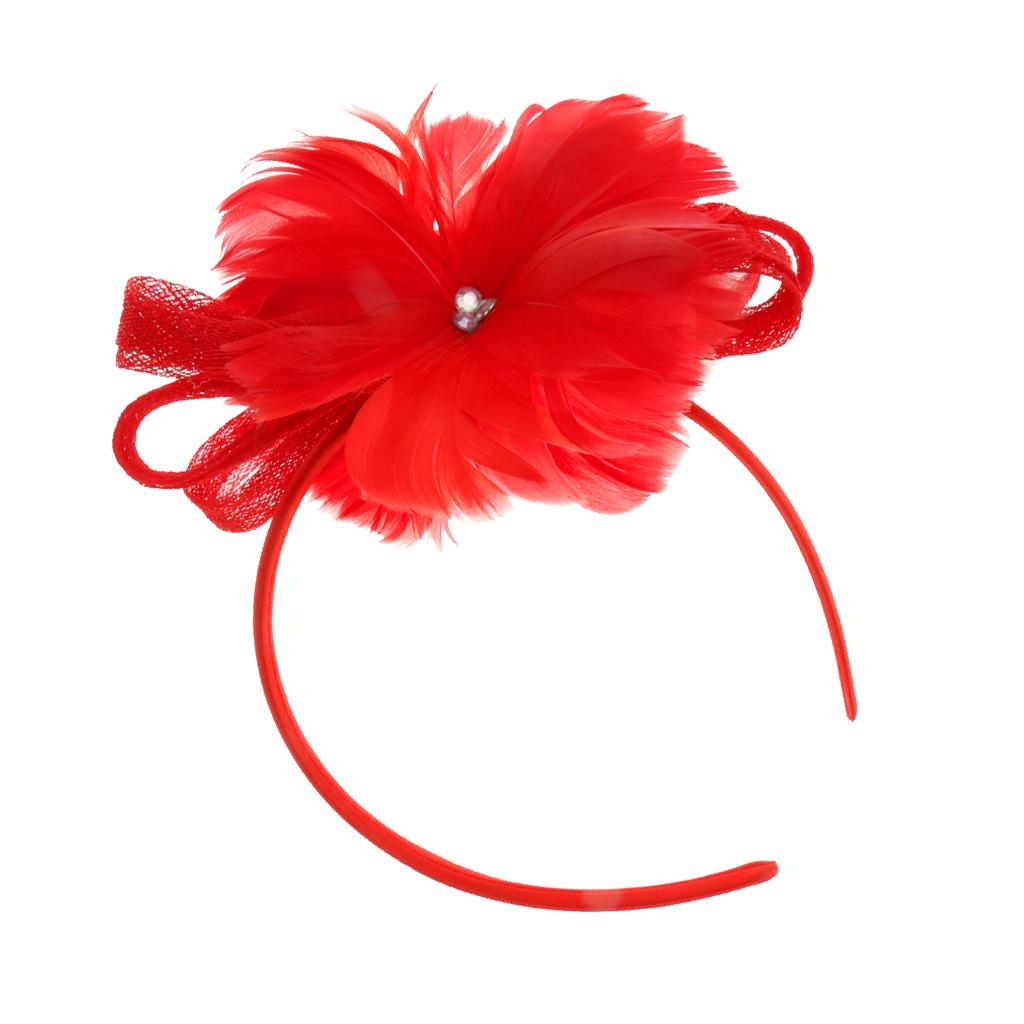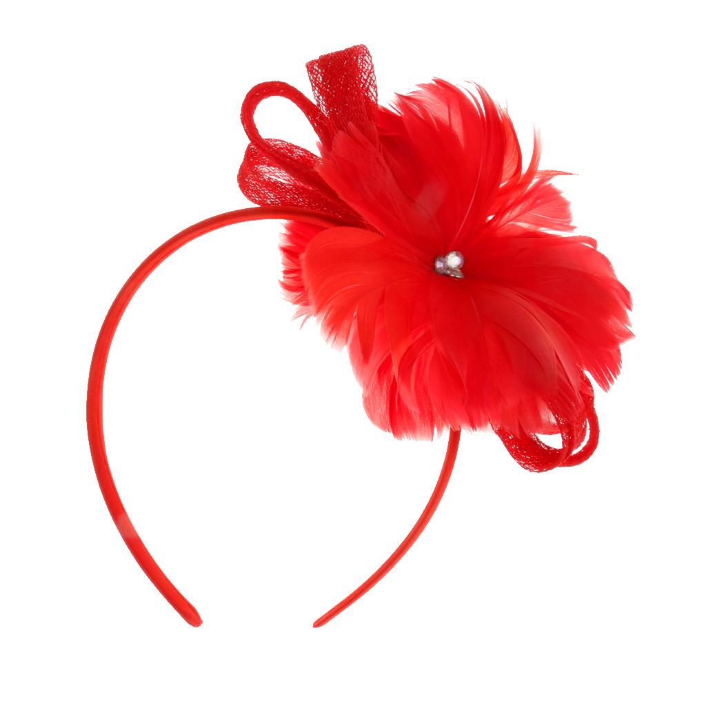 Womens Fascinator Hat Headband Feather Cocktail Wedding Party Headpiece Red