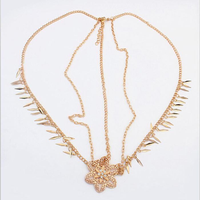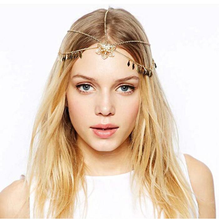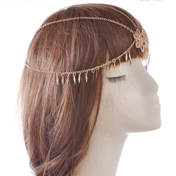 Women's Fashion Alloy Head Chain with Leaf Flower Tassel Hairband Headband
