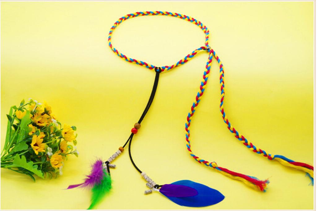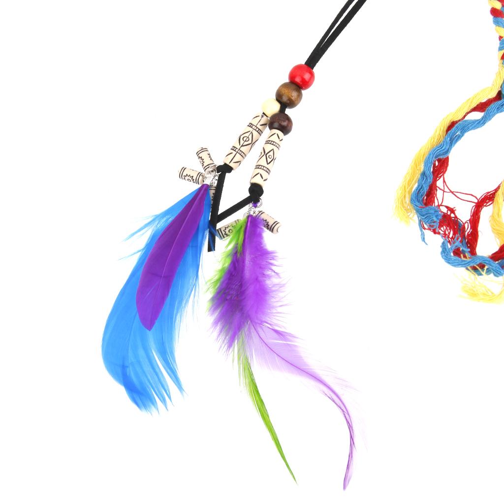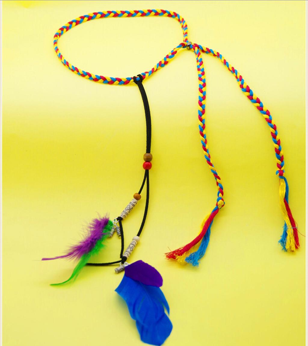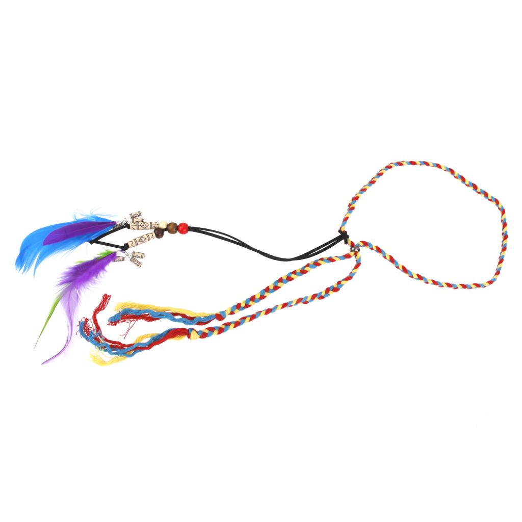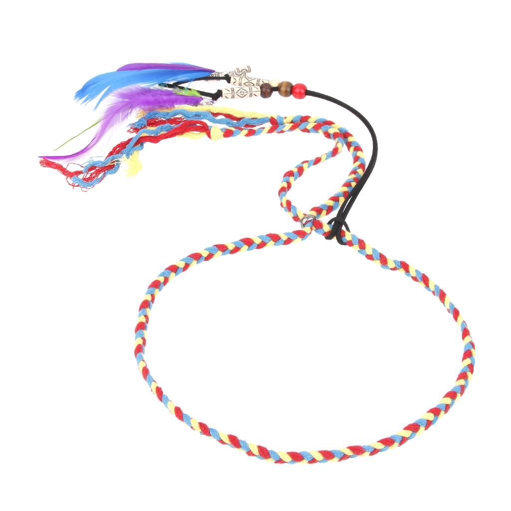 Womens Feather Tassels Belt Colorful Braided Headband Bohemian Style