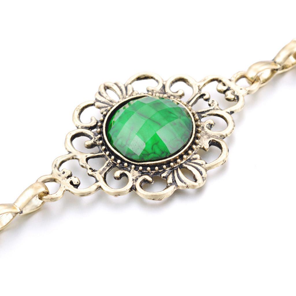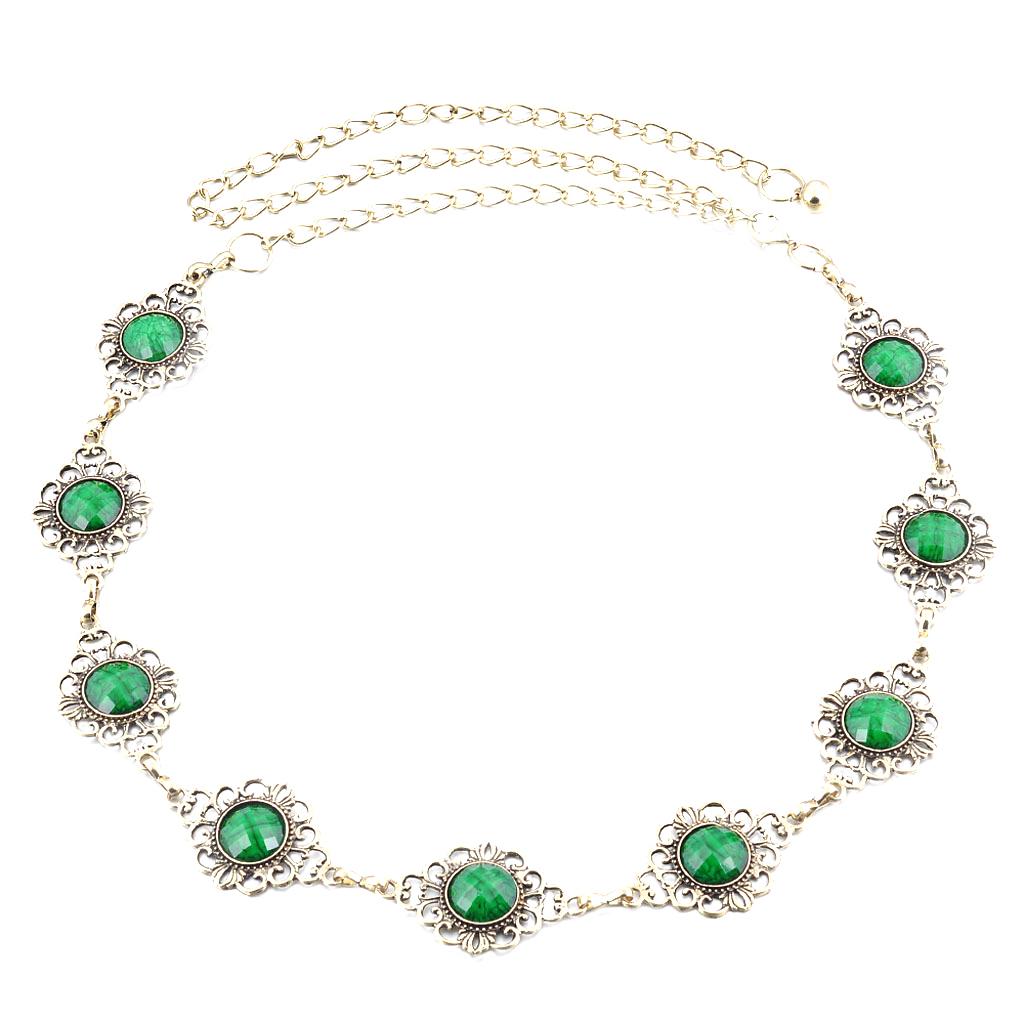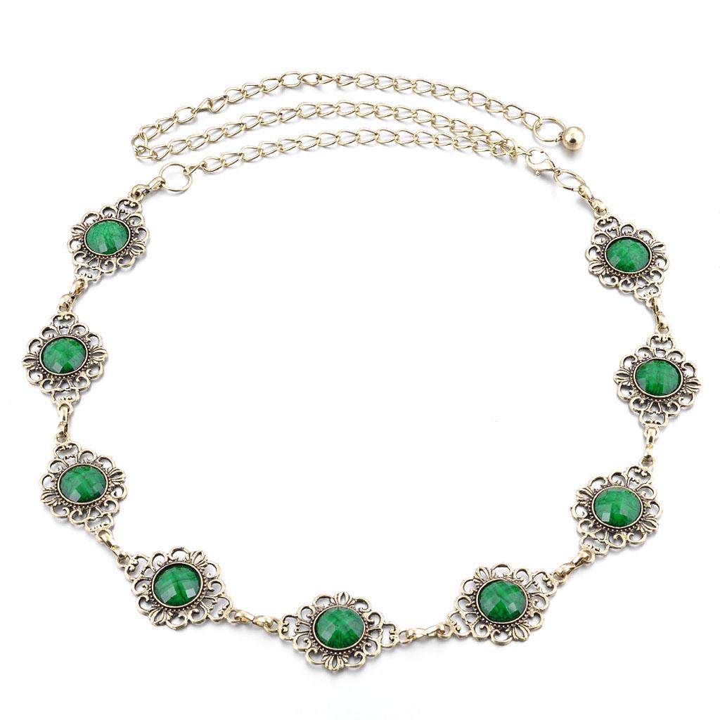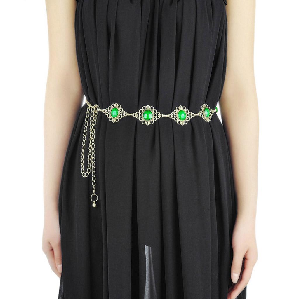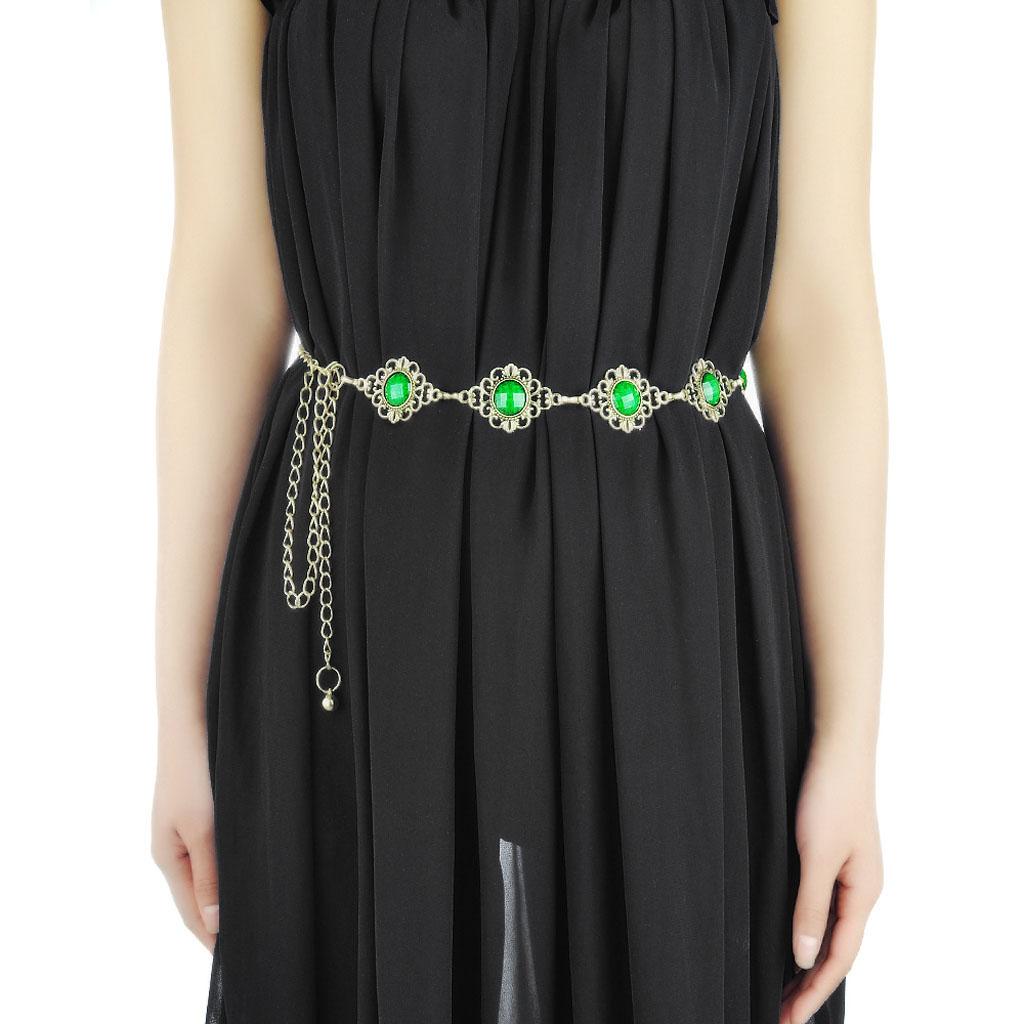 Womens Green Gem Kallaite Crystal Waist Chain Belt Gold 115cm