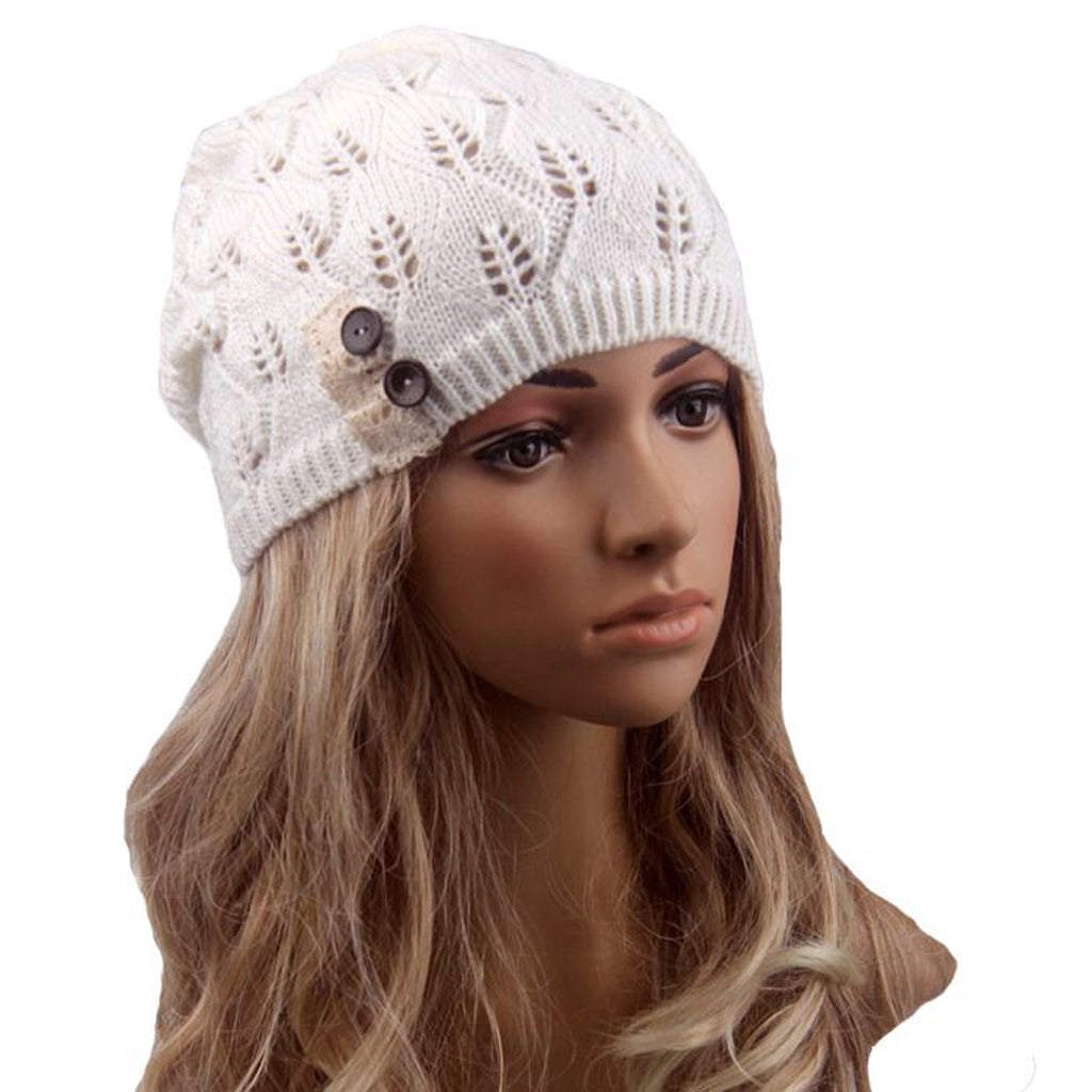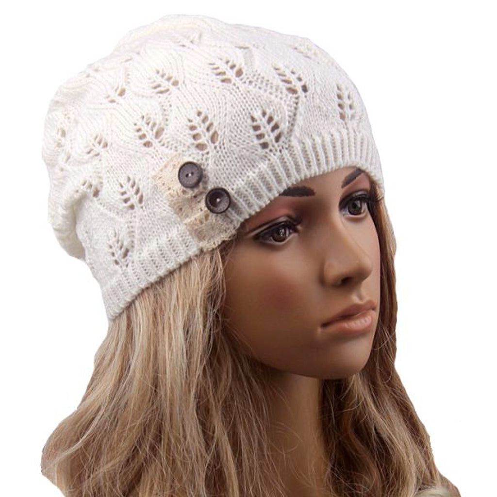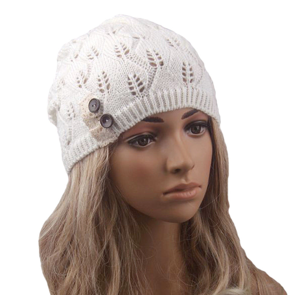 Women's Knit Beanie Hat Adult Winter Knited Skullcap White