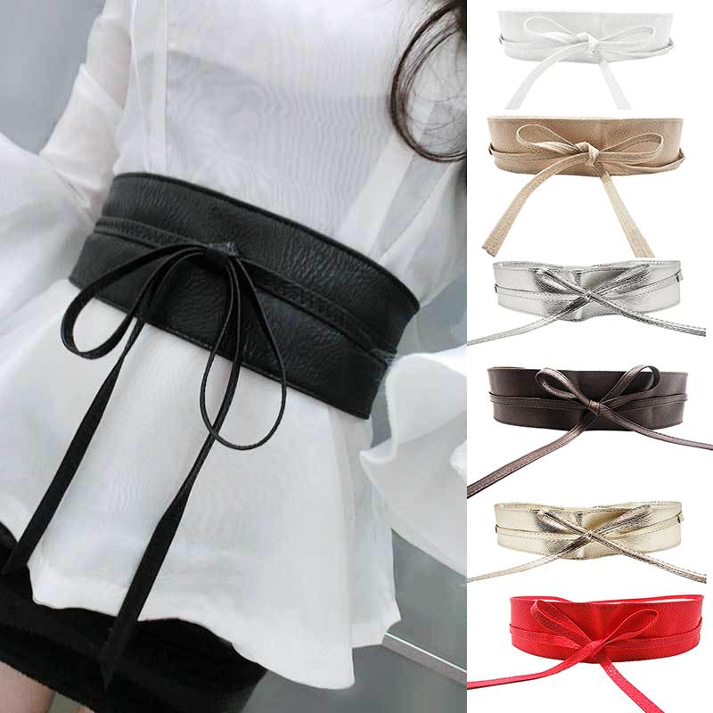 Womens Leather Wide Self Tie Waist Band Boho Dress Belt