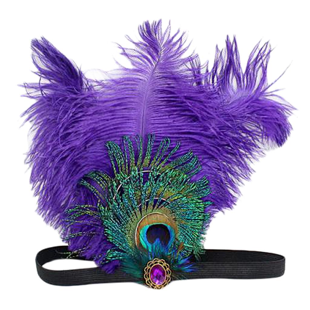 Womens Peacock Feather Fascinator Headpiece Headband Dress Fancy Purple