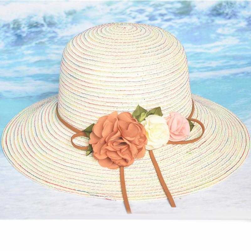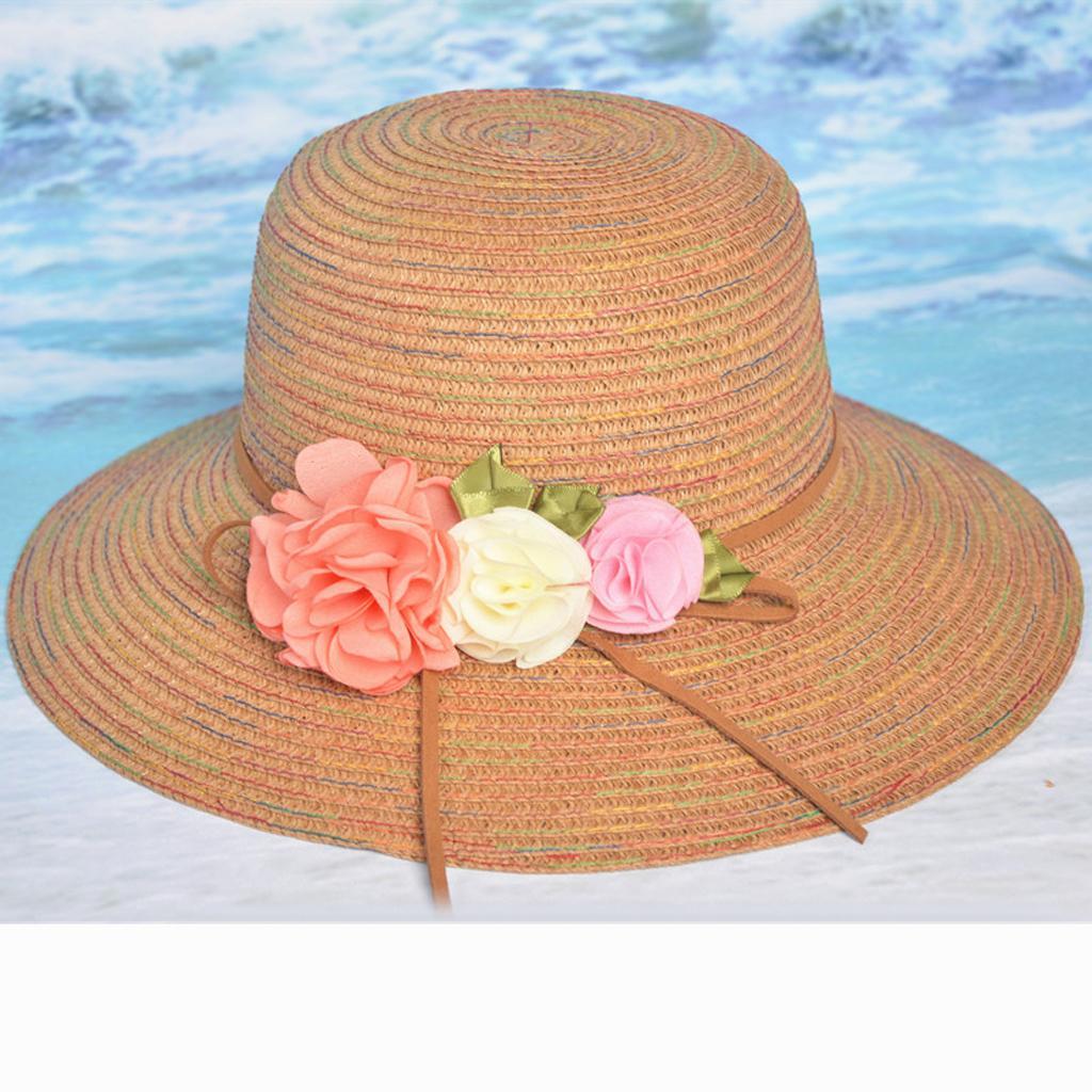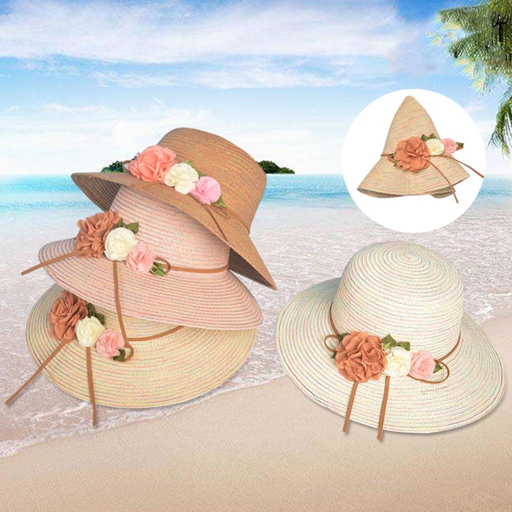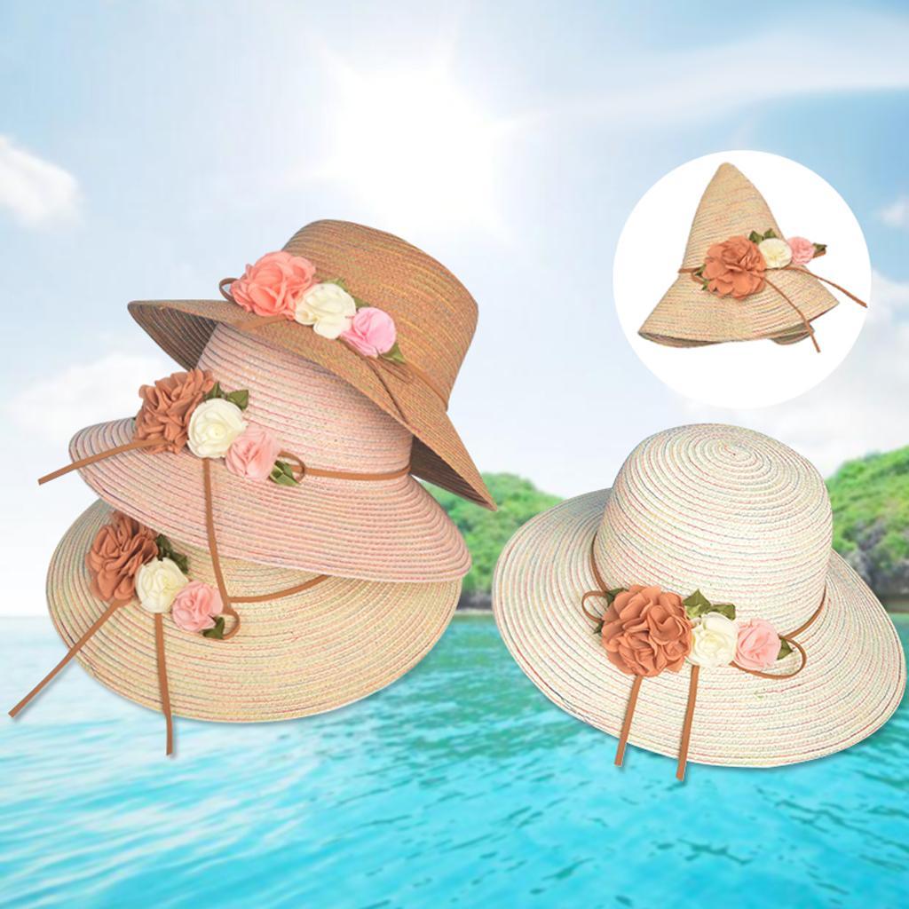 Summer Women Lady Foldable Sun Hat Beach Cap Flower Floppy Wide Brim Bohemia Cap Outdoor Hat
