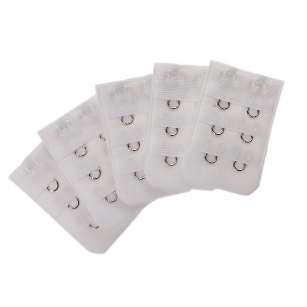 5pcs Elastic Bra Strap Extension Bra Extenders 2x 3 Hook White