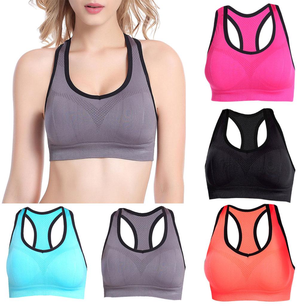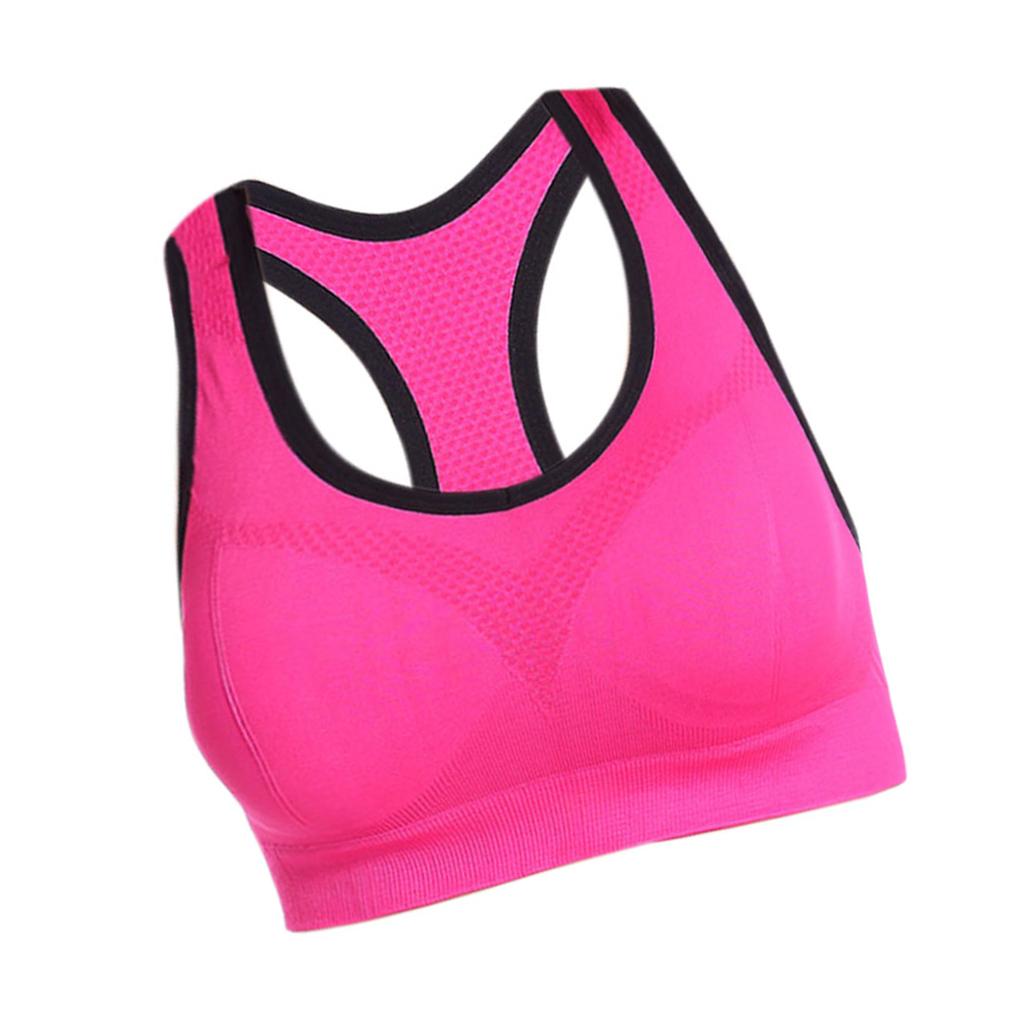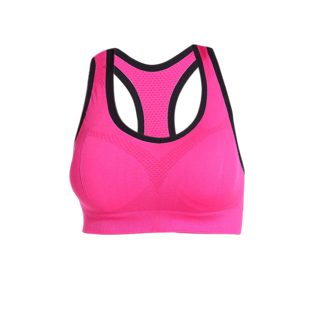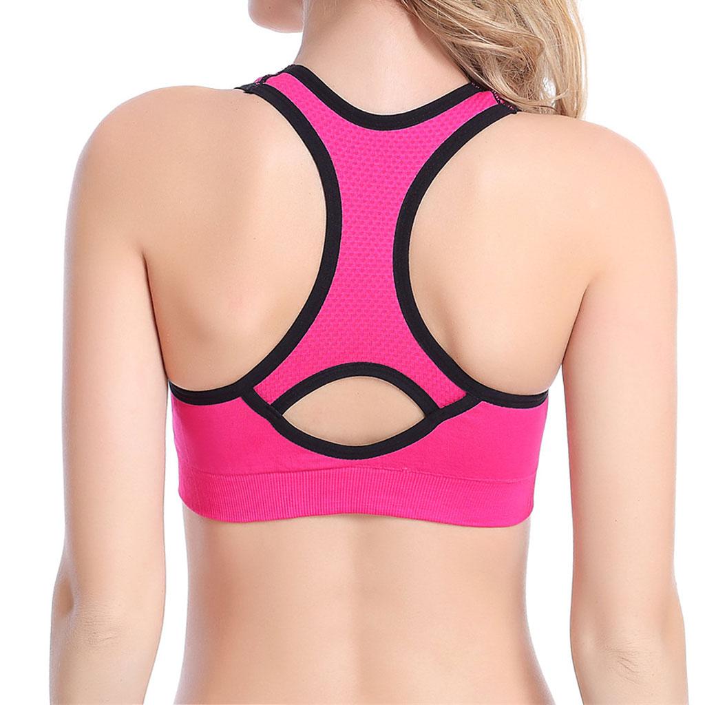 Active U-Neck Cut Out Push Up Seamless Wire Free Yoga Bra for Women Rose M