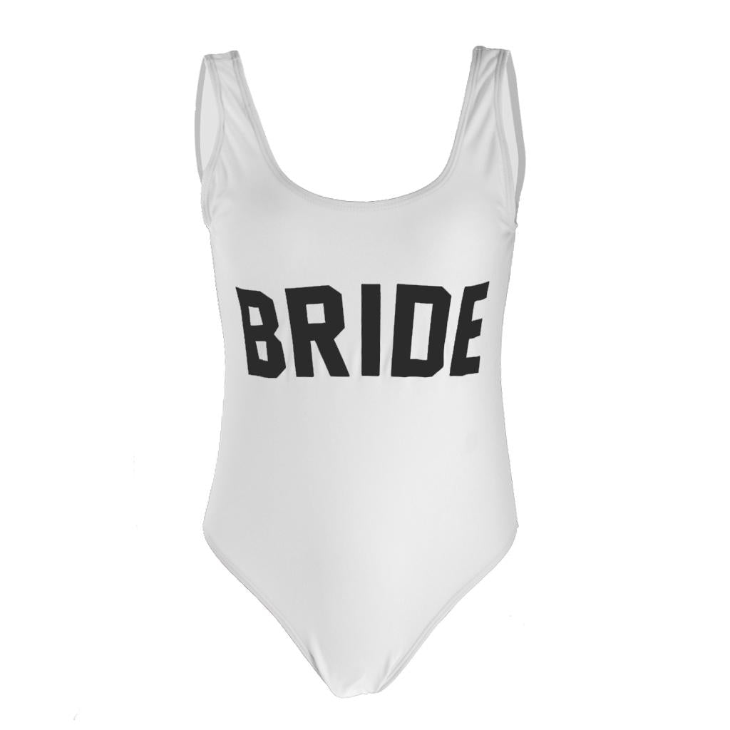 Trendy and seductive look.Special BRIDE letters design printed swimsuit.