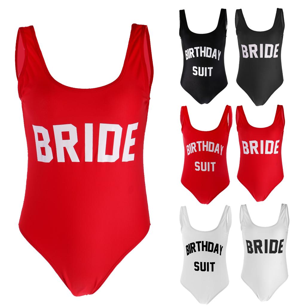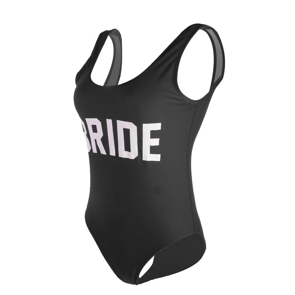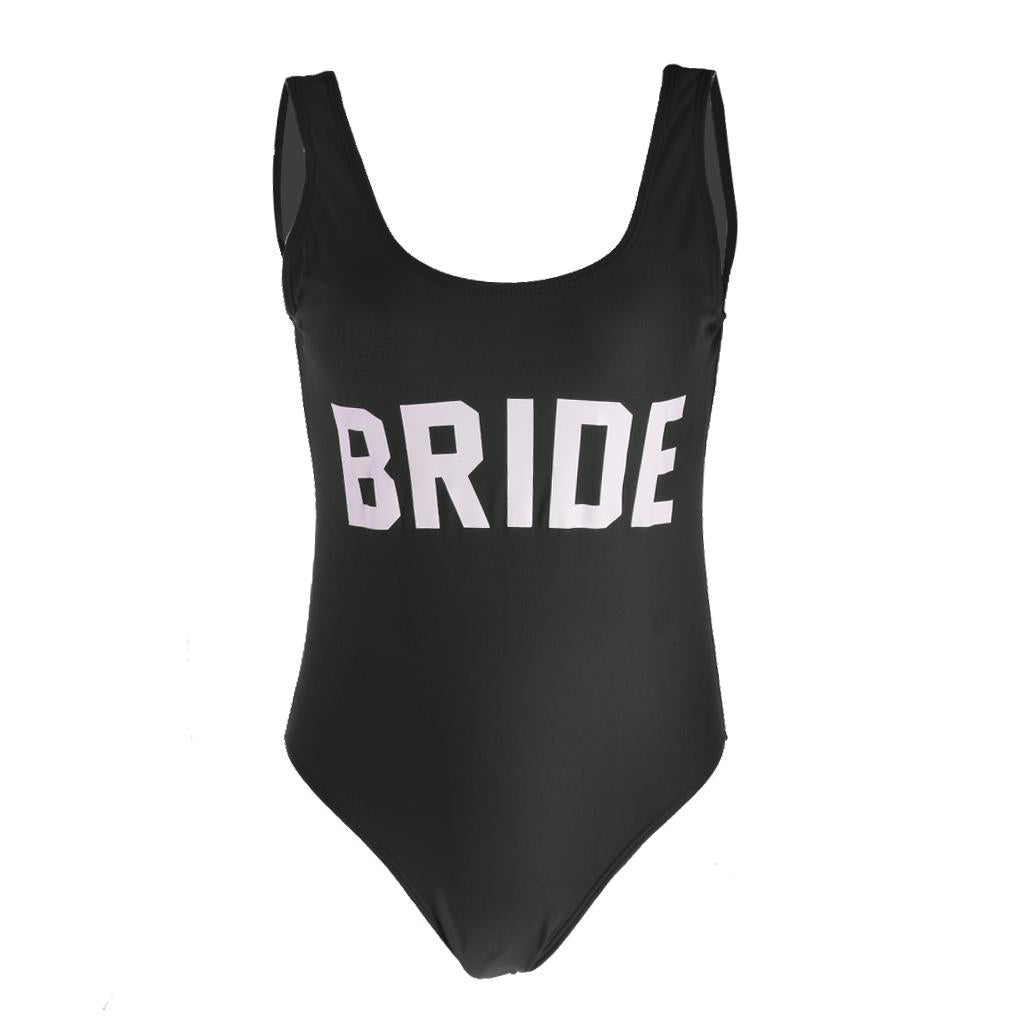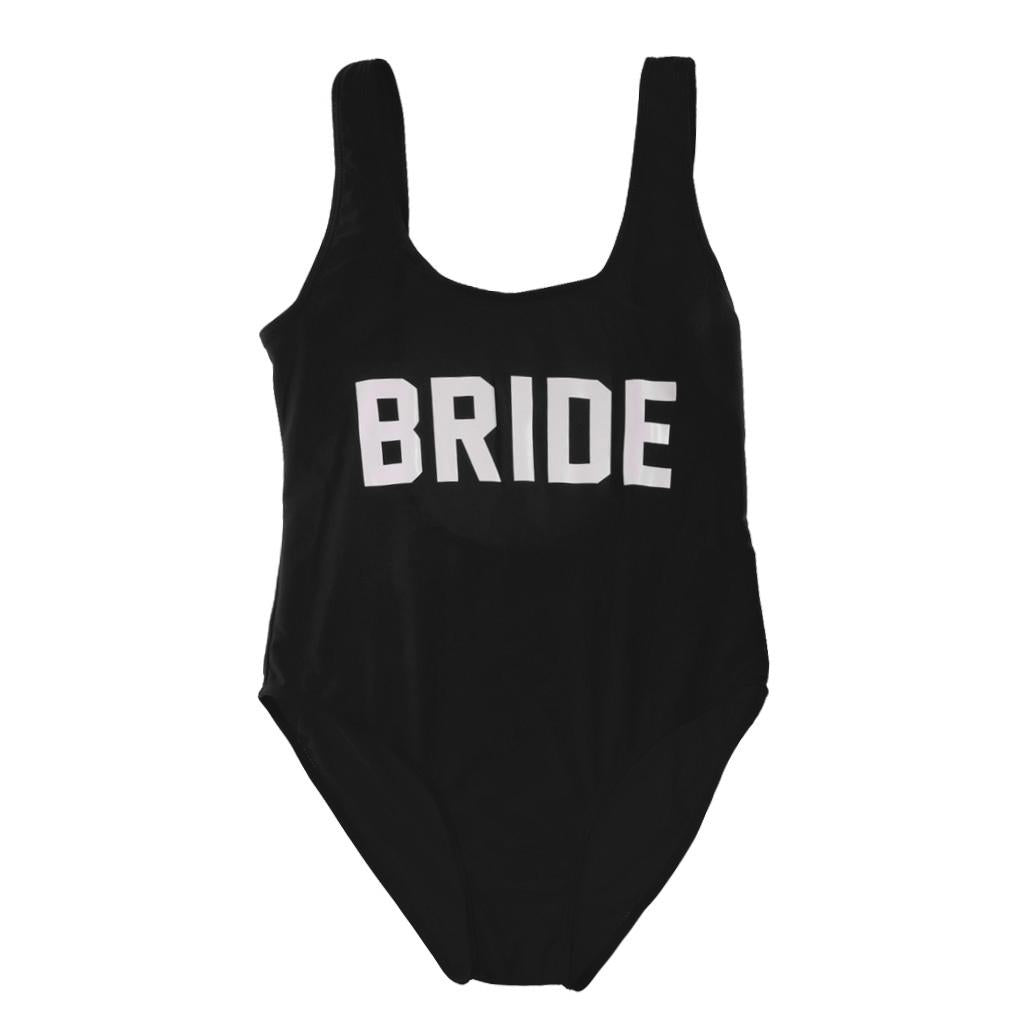 Bride Letter Print Women Bikini Bodysuit Swimsuit Beachwear Monokini S Black