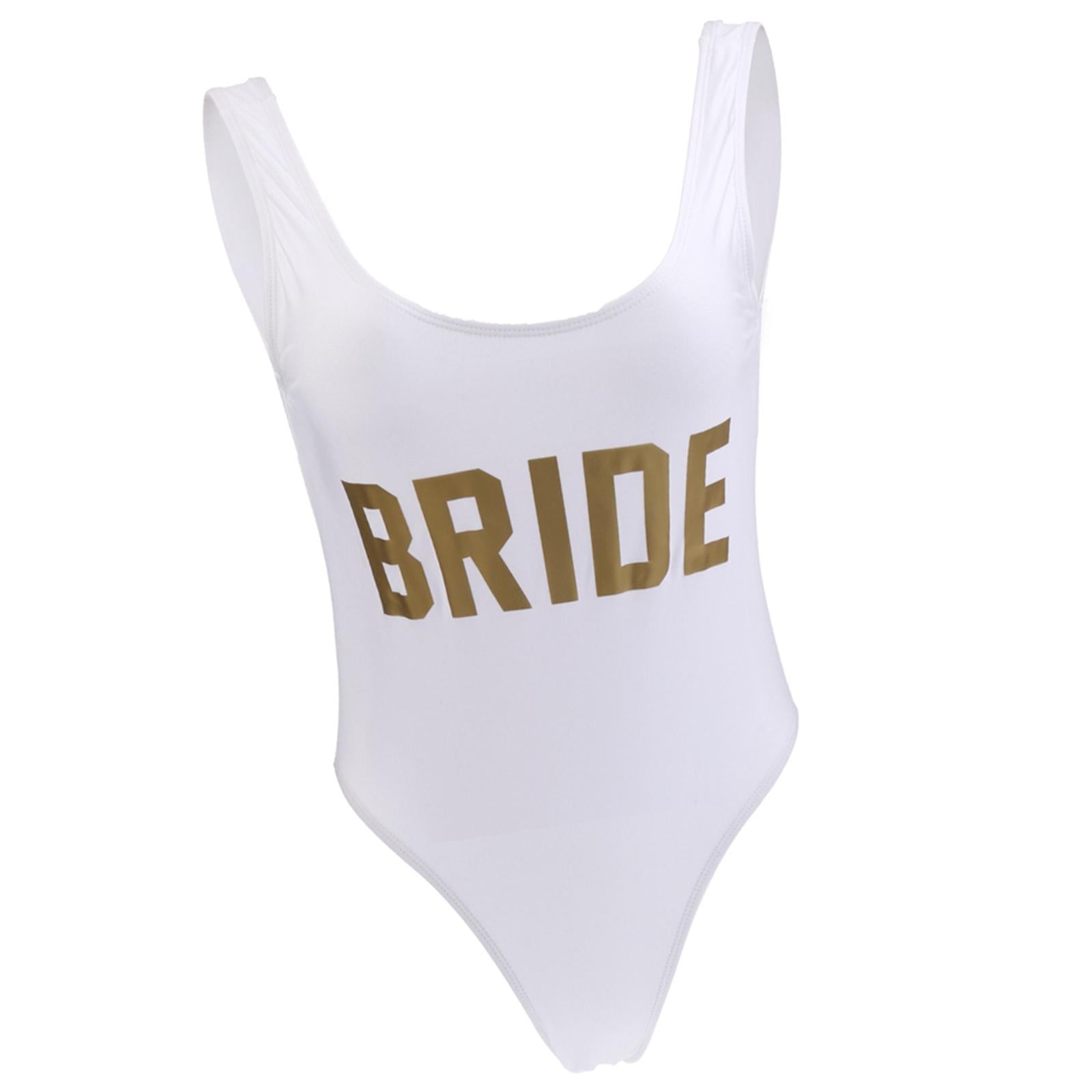Trendy and seductive look. Cool BRIDE gold letters design printed swimsuit.