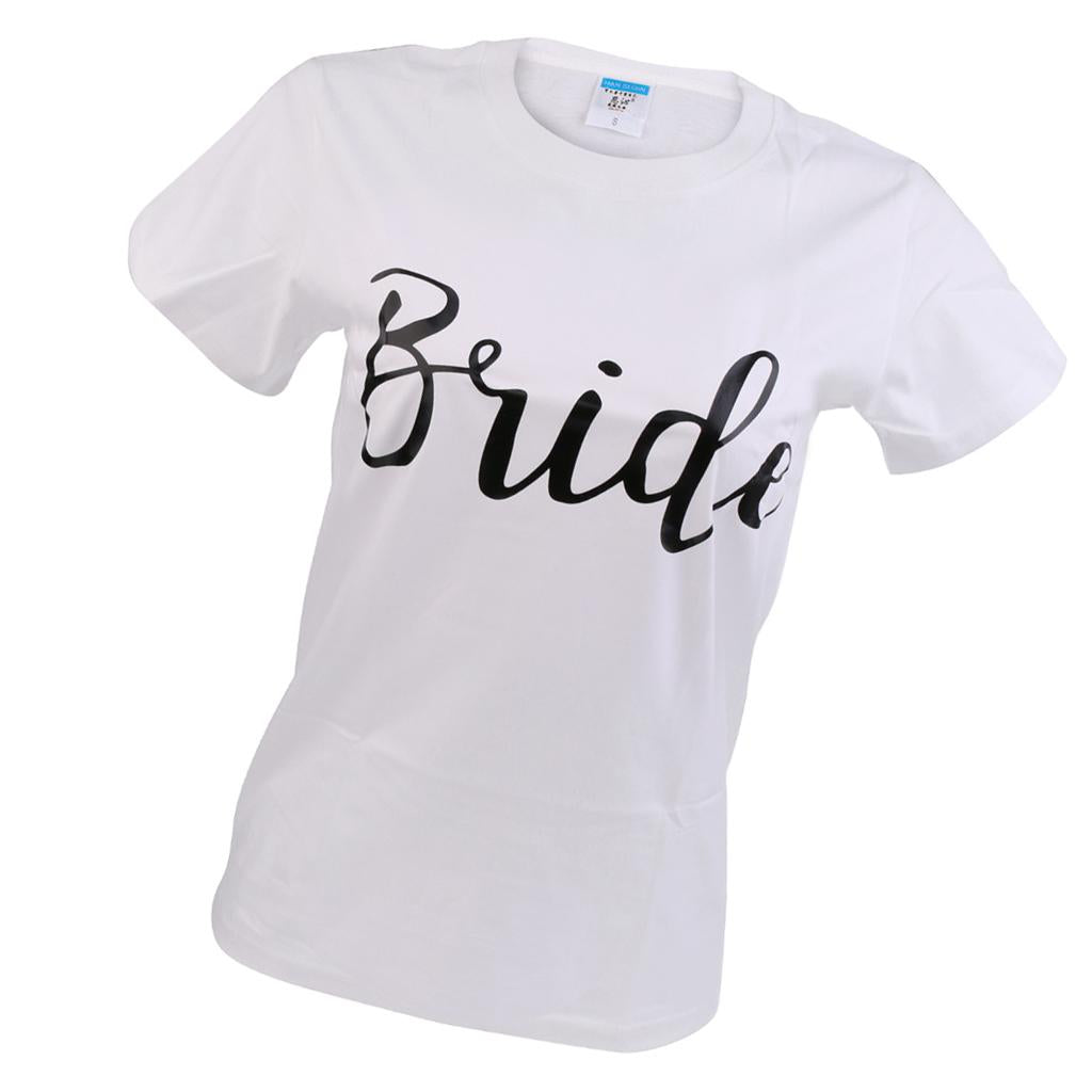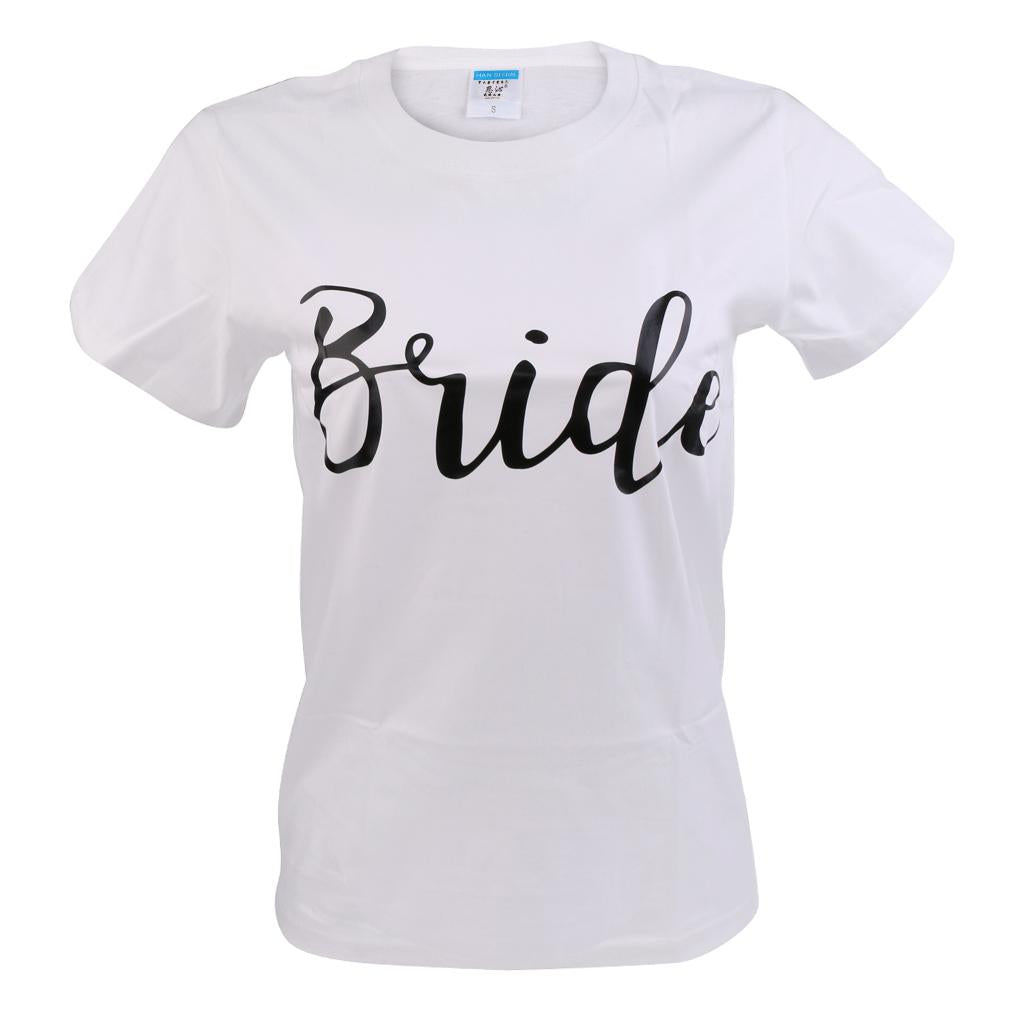 Bride T-shirt Womens Tee for Wedding Bachelorette Hen Do Party L White&Black