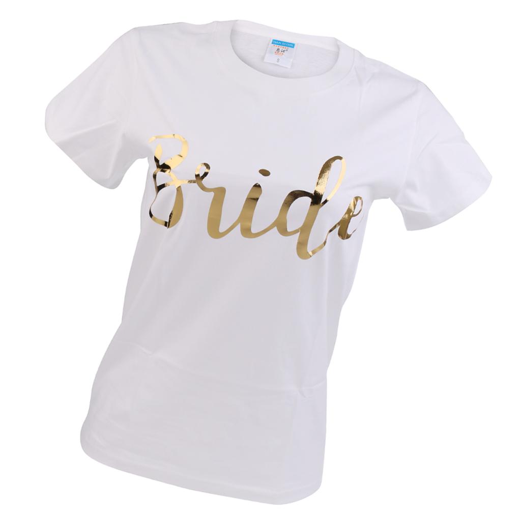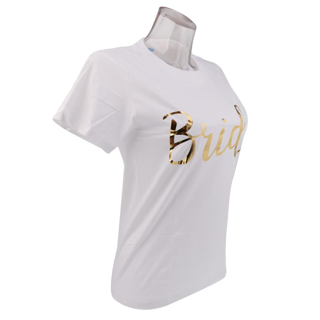 Bride T-shirt Womens Tee for Wedding Bachelorette Hen Do Party XL White&Gold