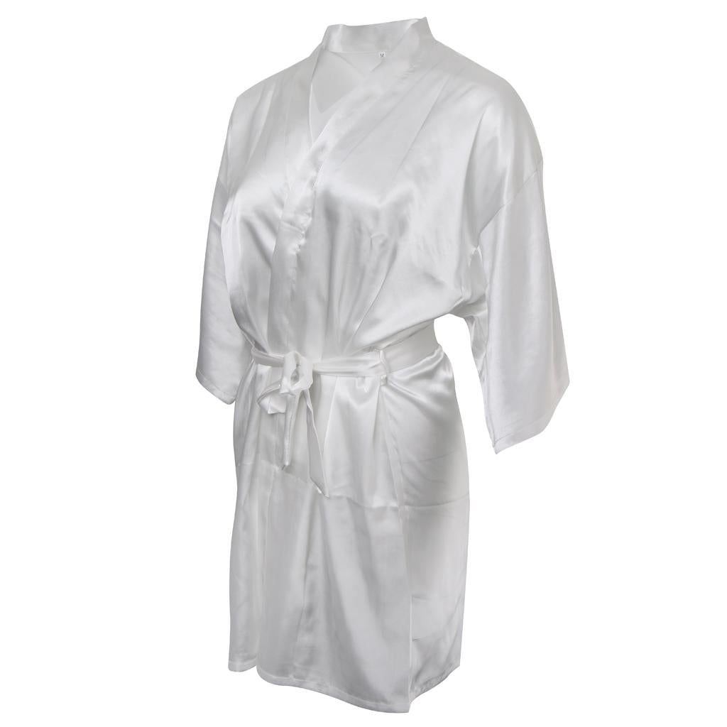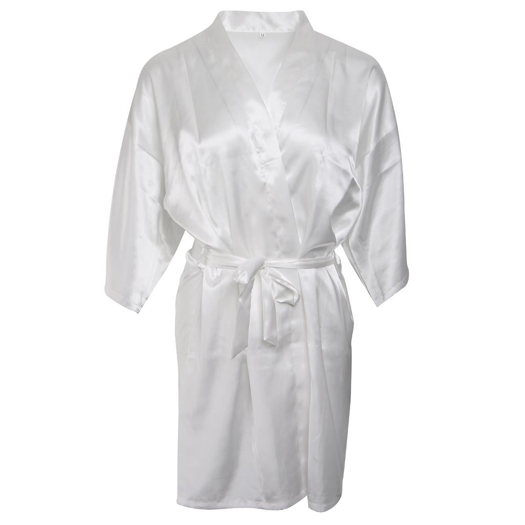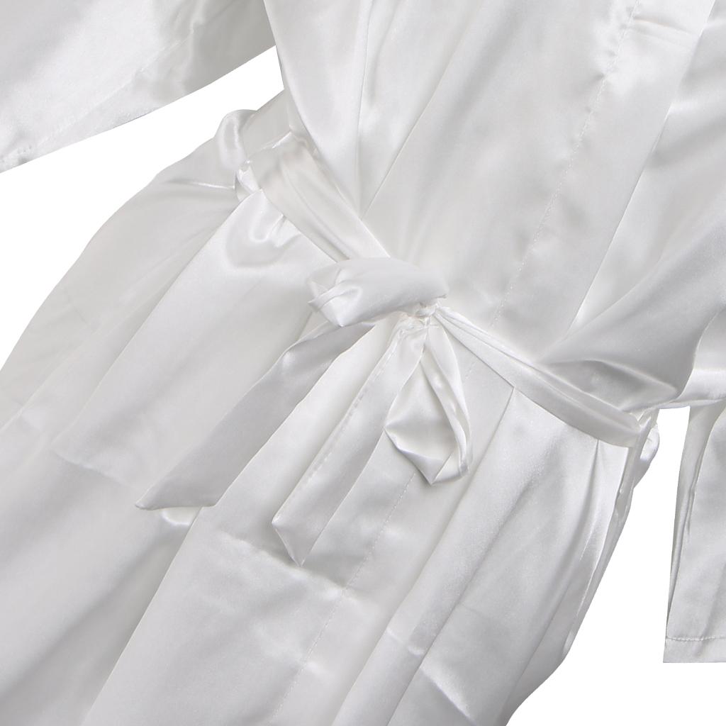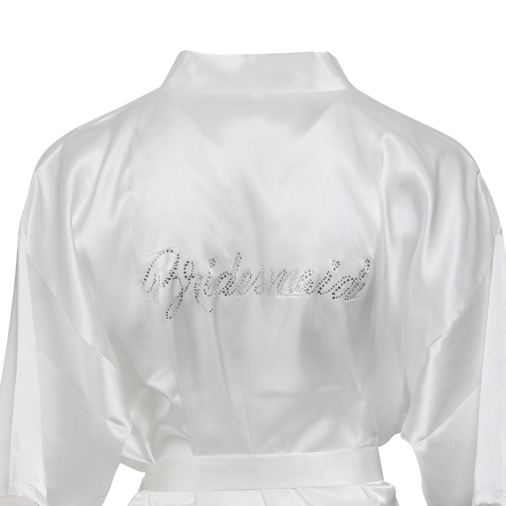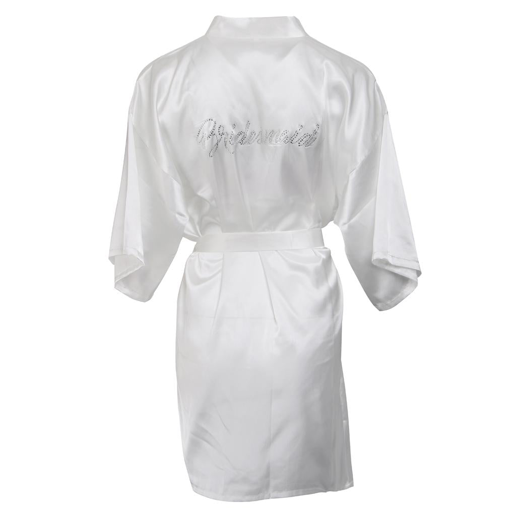 Bridesmaid Silk Satin Robe Rhinestone Wedding Gown Sleepwear XXL White