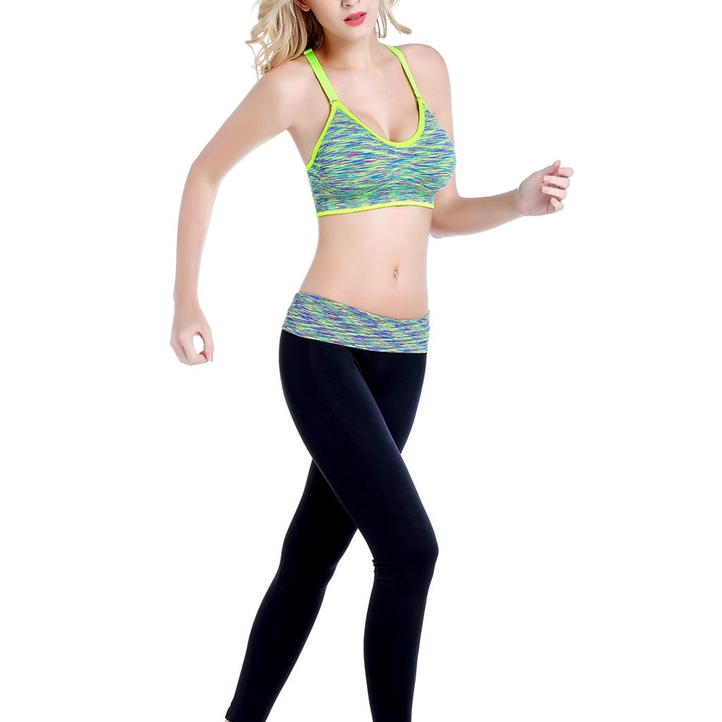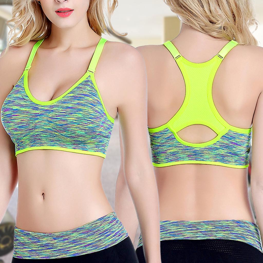 Comfortable Wear Seamless Active Quick-Drying Section Stained Push Up Yoga Training Gym Fitness Bra For Women Girls Green S