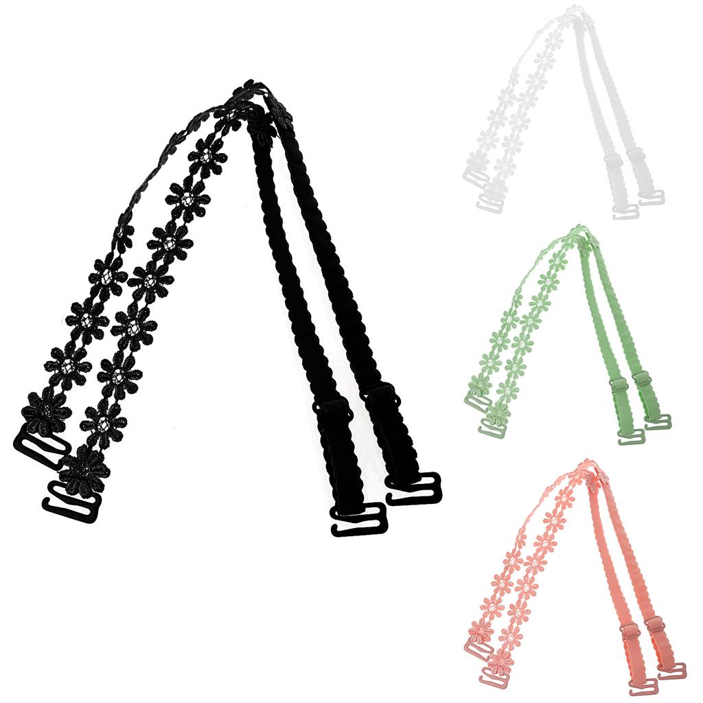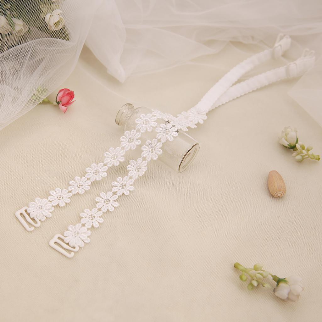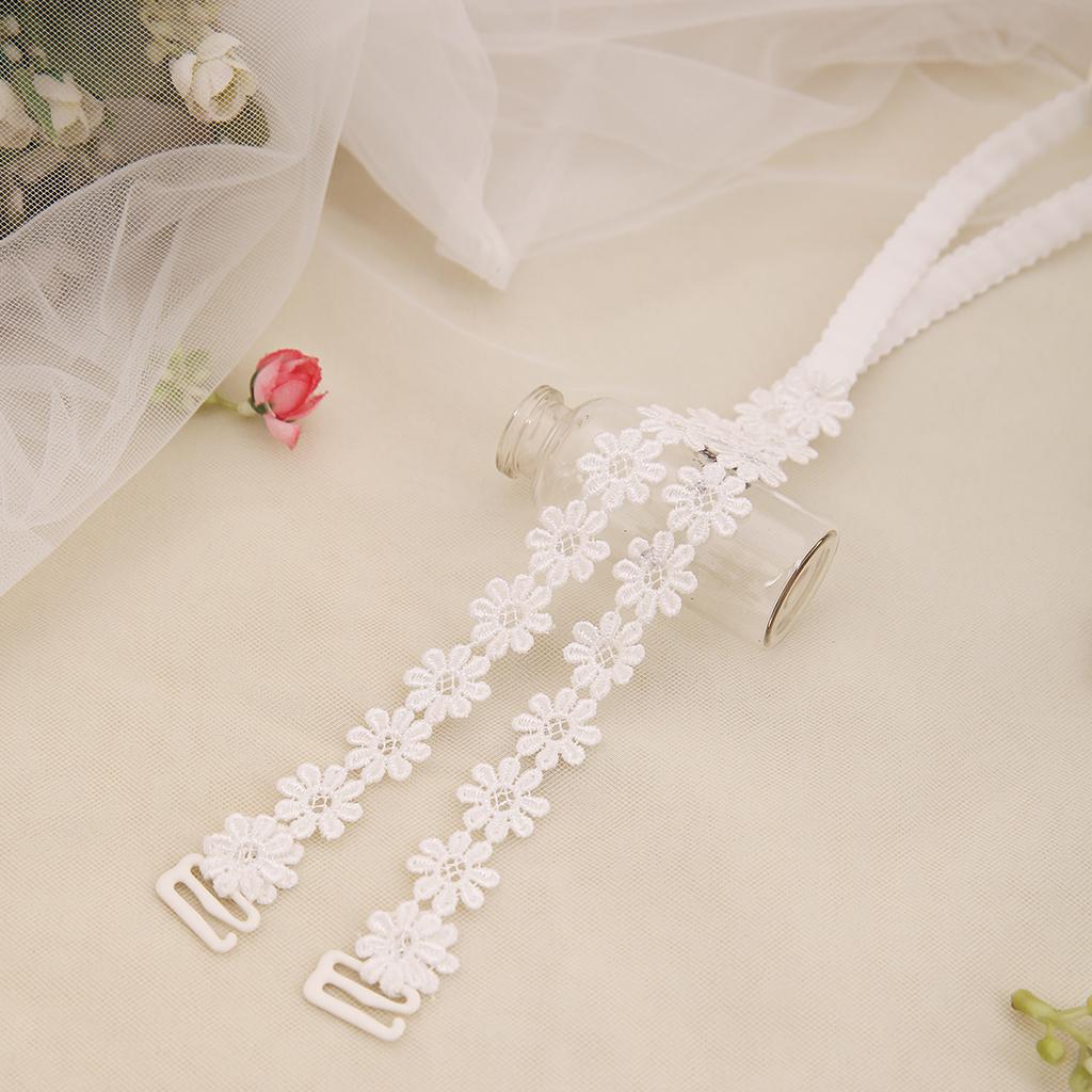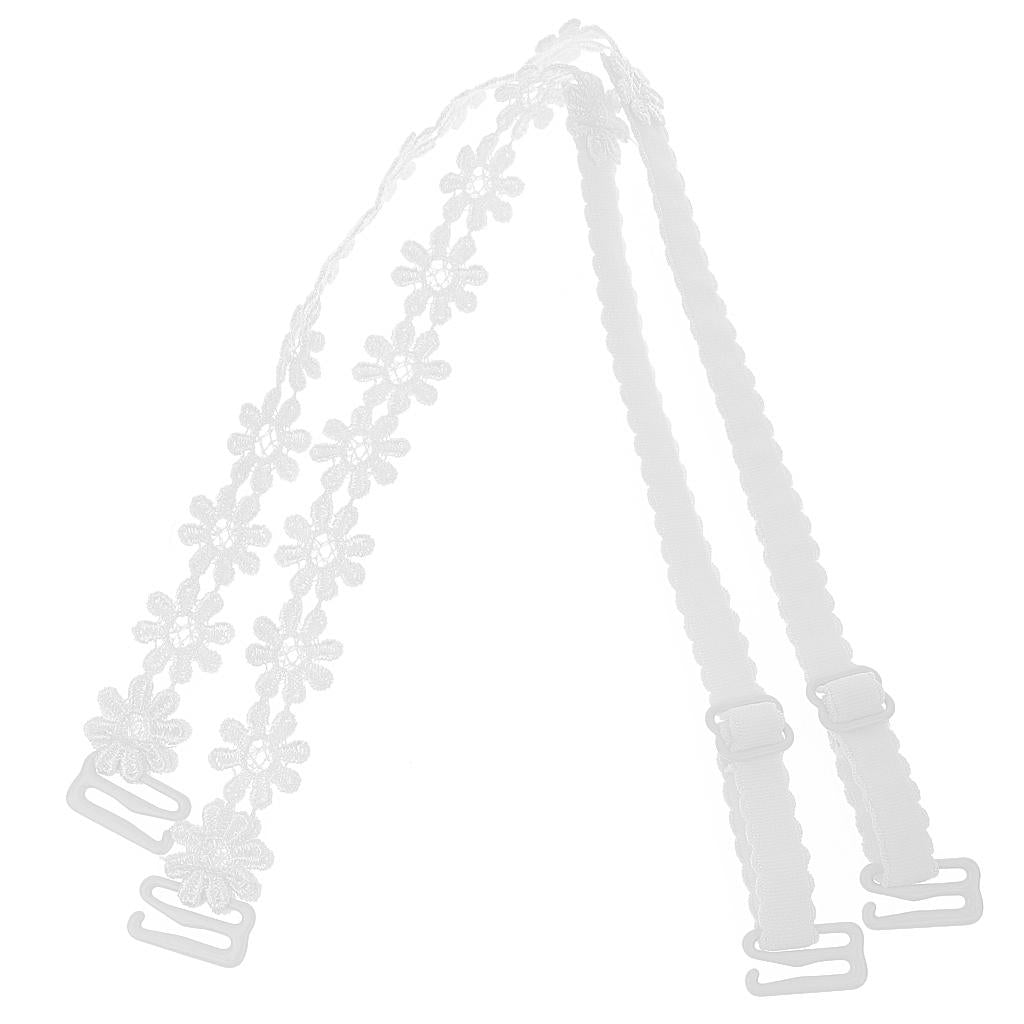 Elastic Sunflower Floral Lace Bra Strap for Women White