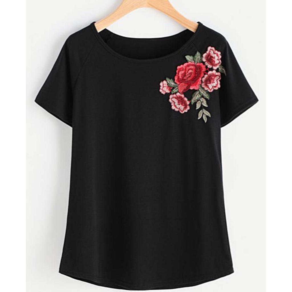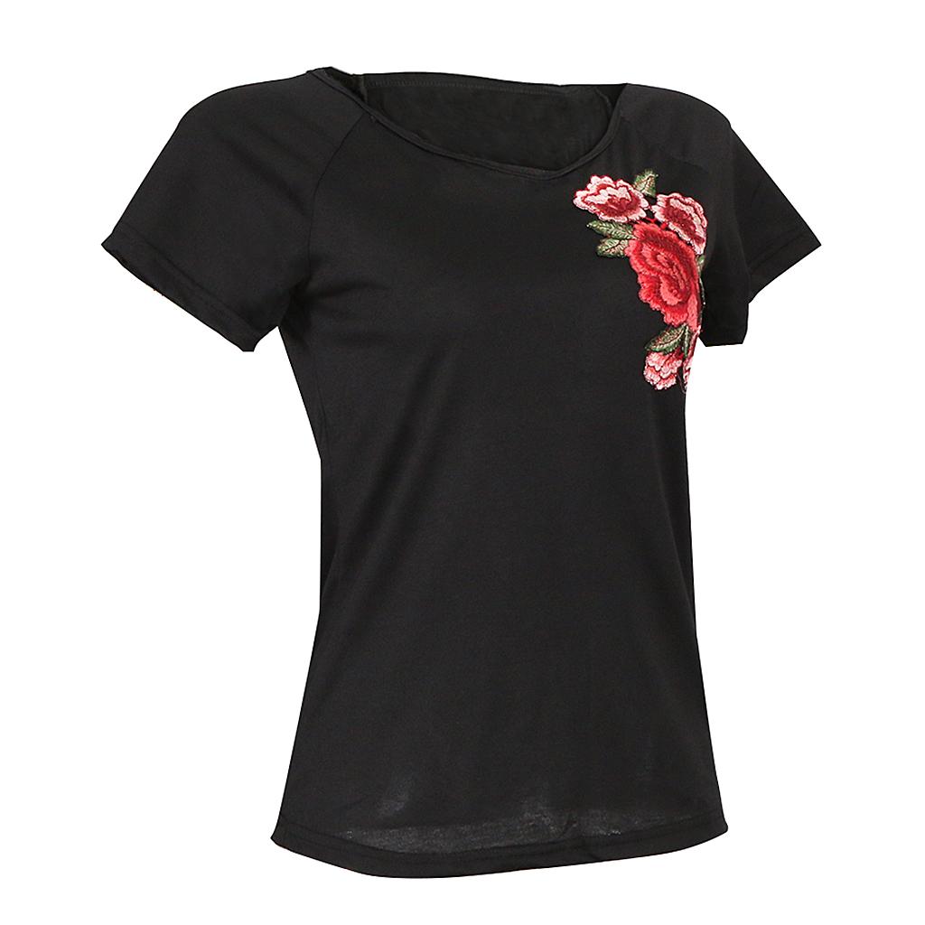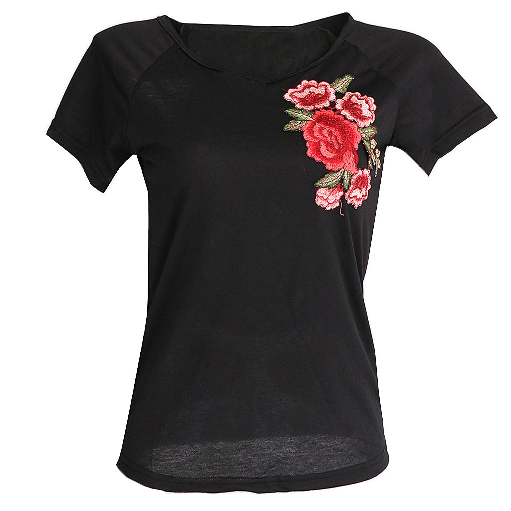 Fashion Women Embroidery Blouse Casual Short Sleeve T-Shirt Tops S Black