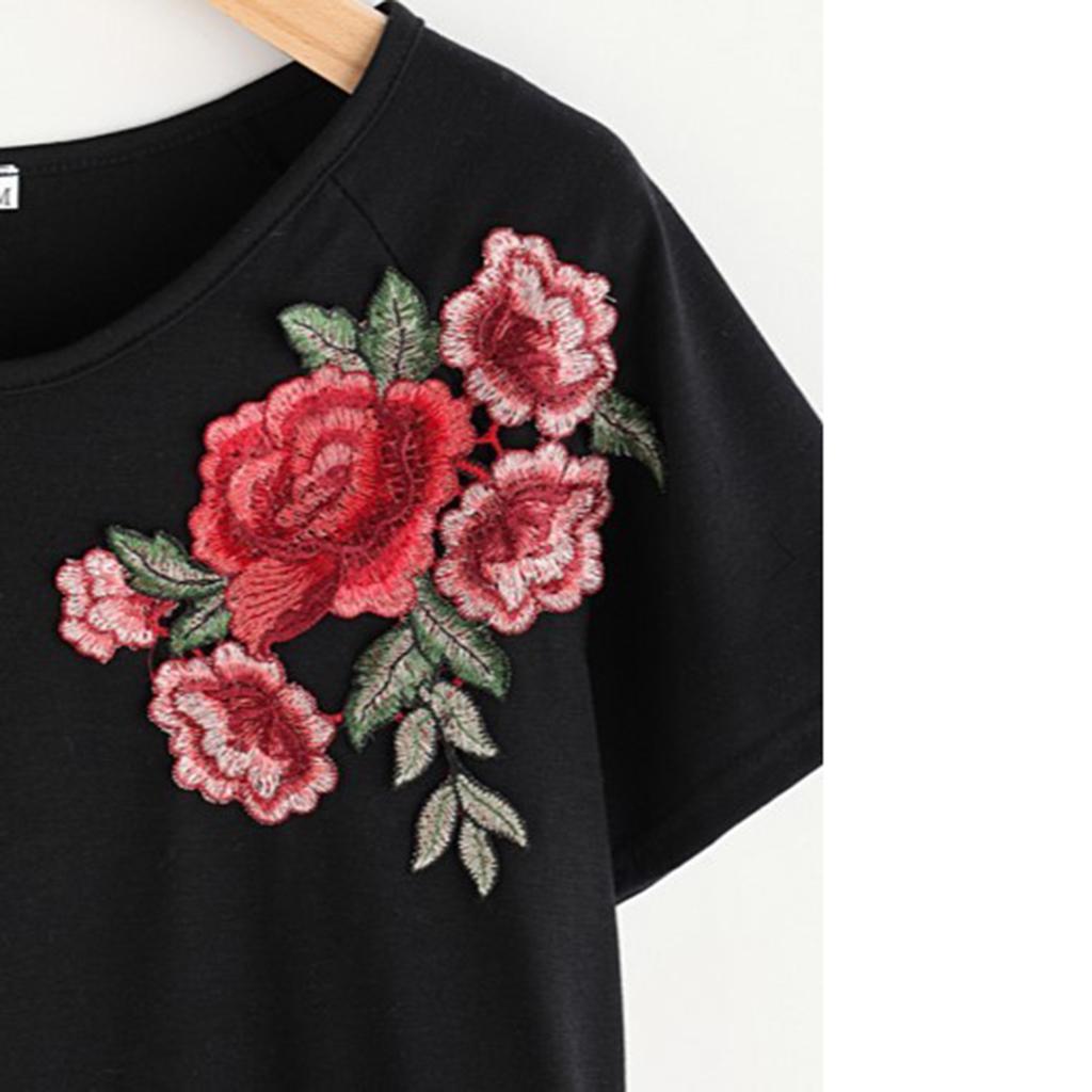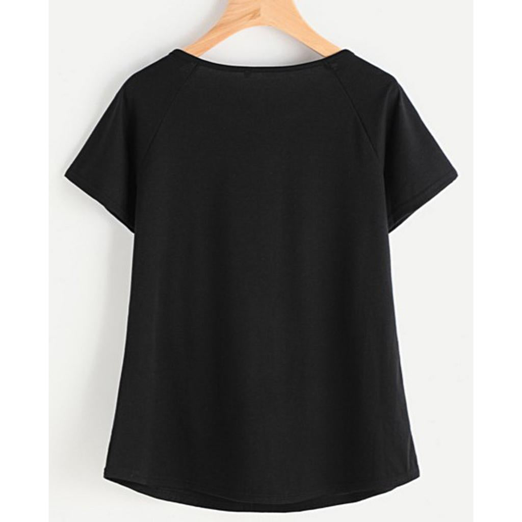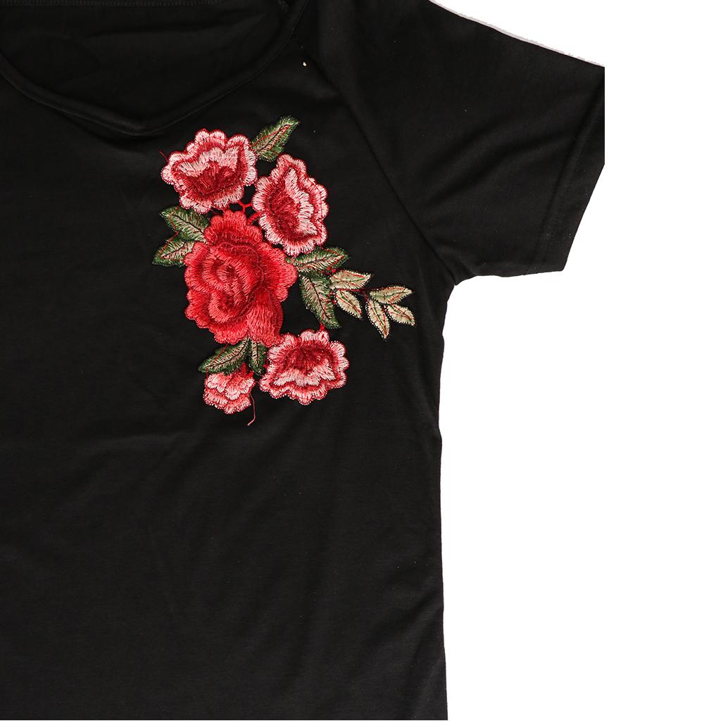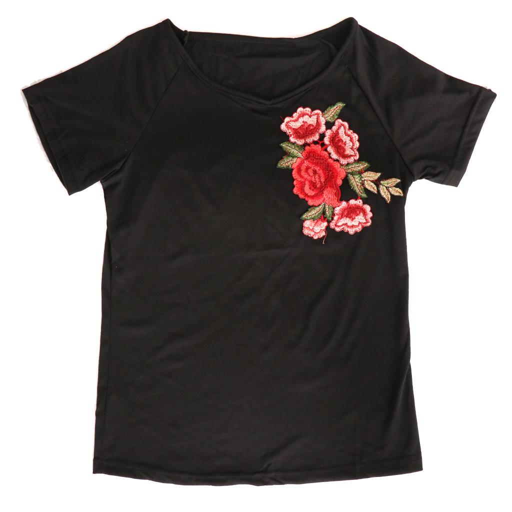 Fashion Women Embroidery Blouse Casual Short Sleeve T-Shirt Tops S Black
