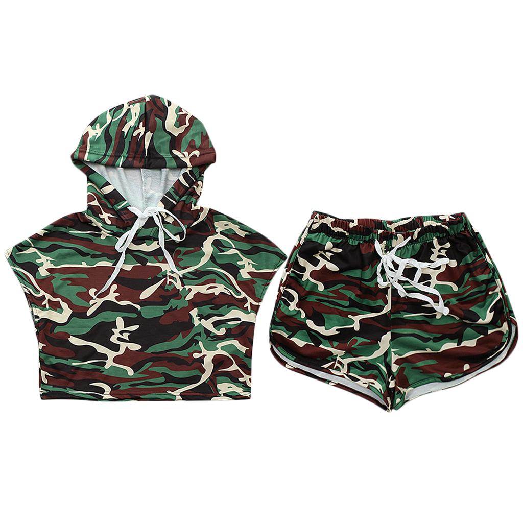 • Summer Camouflage Casual Loose Playsuit Two Piece Outfits
