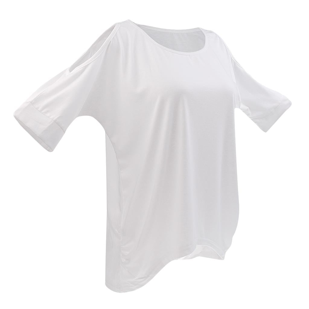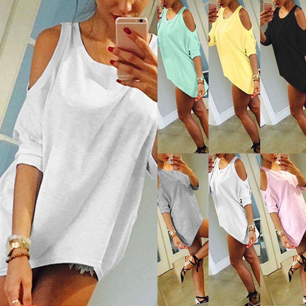 Hollowed out cold shoulder,three quarter sleeve,crew neck