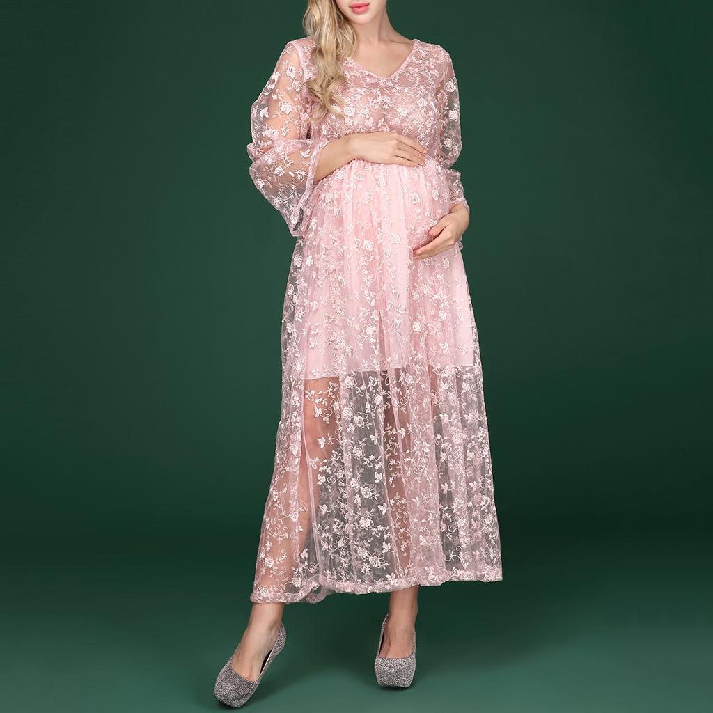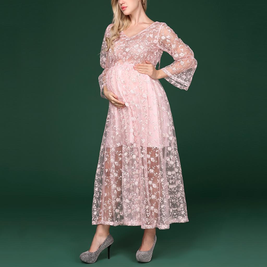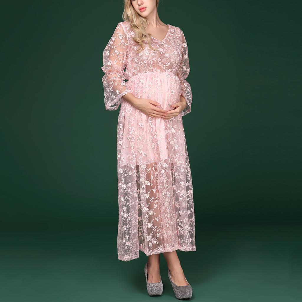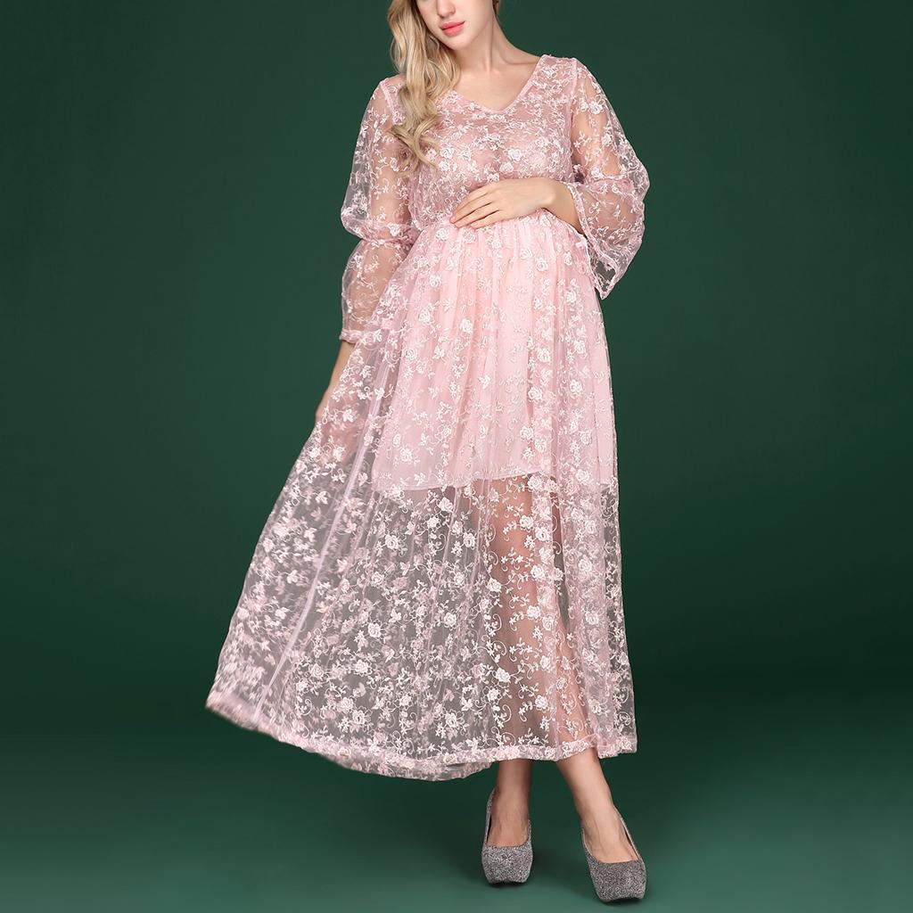 Maternity Womens Embroidery Maxi Dress for Photo Shoot.