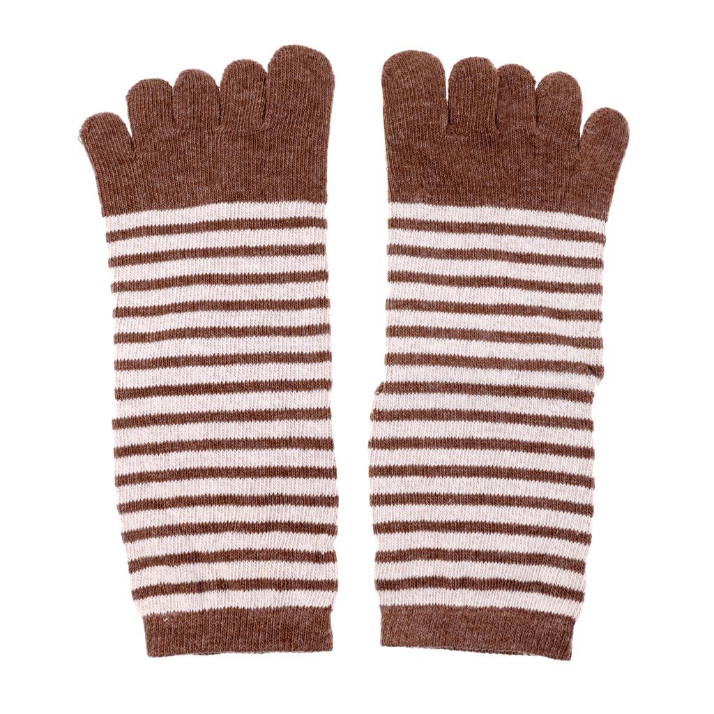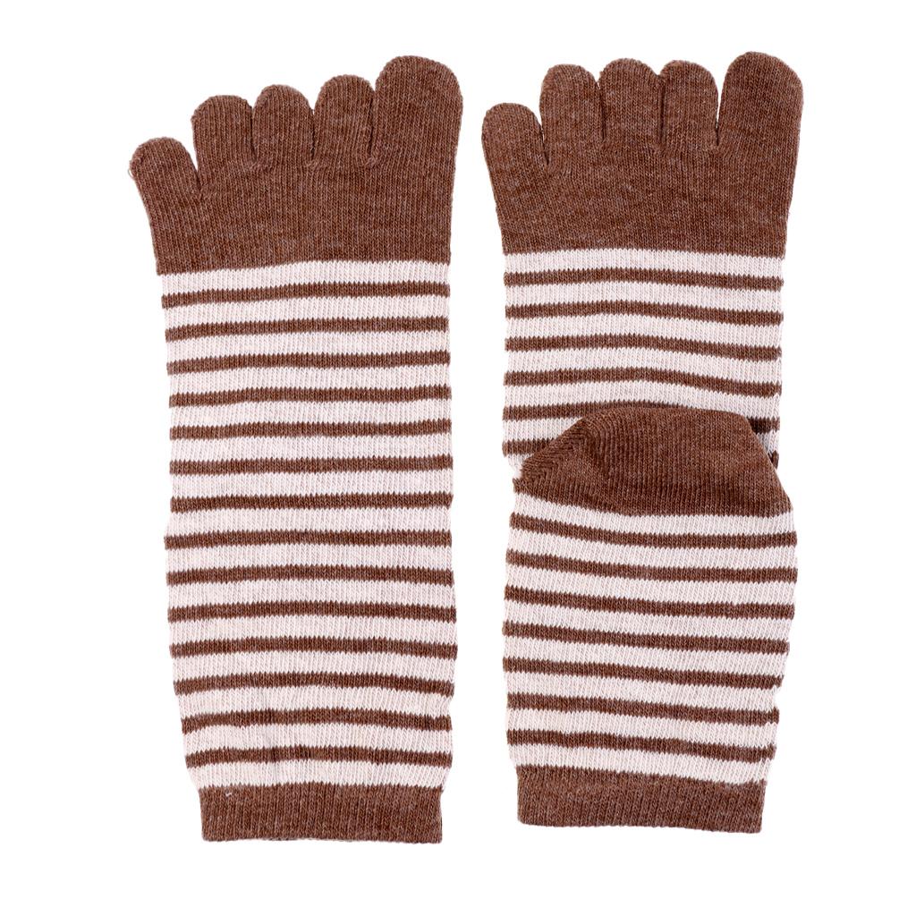 Men Women Blisters Preventing 5 Finger Ankle Striped Toe Socks Cotton Warm Toe Socks Pair Brown