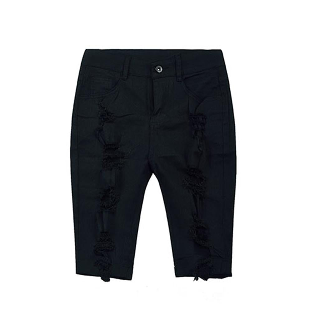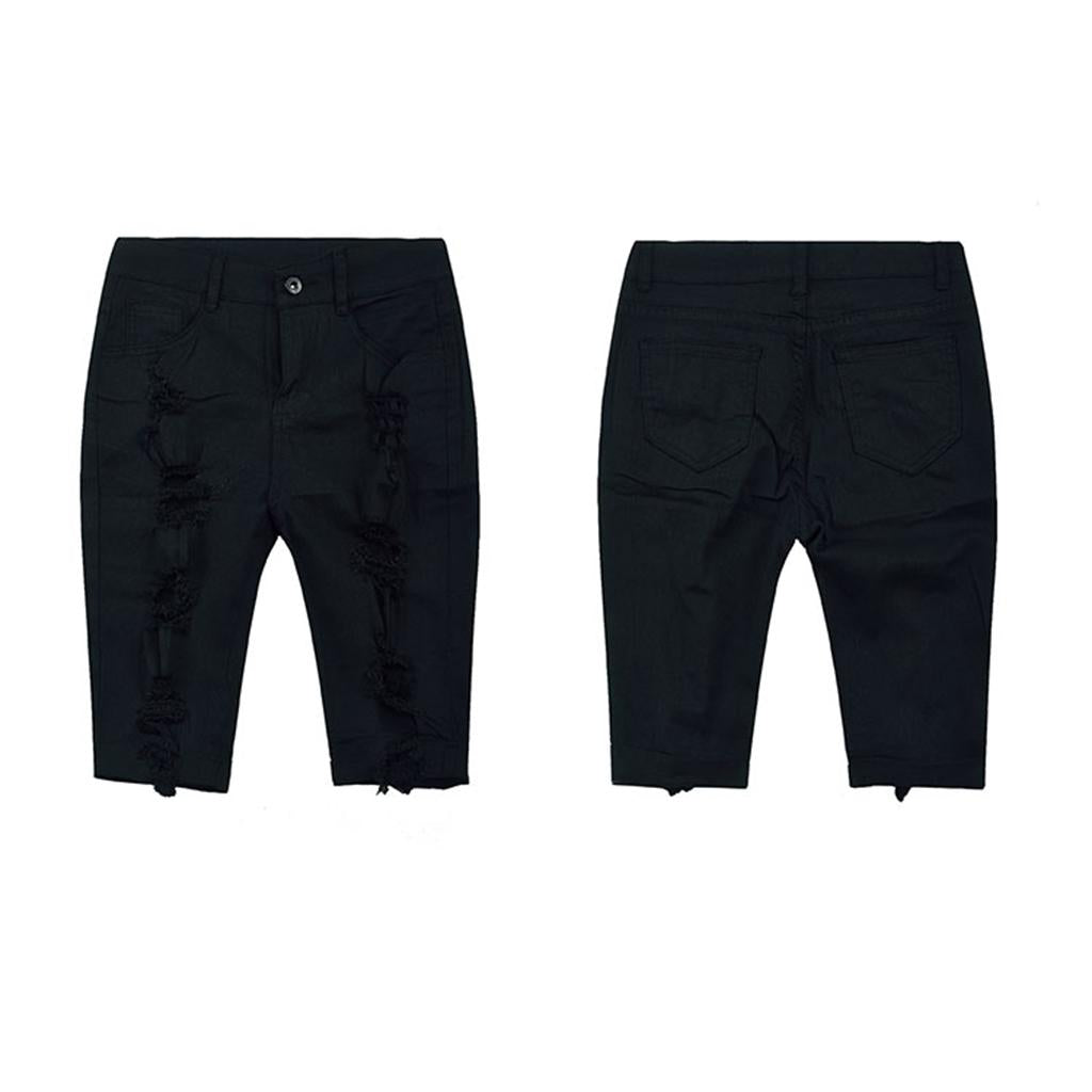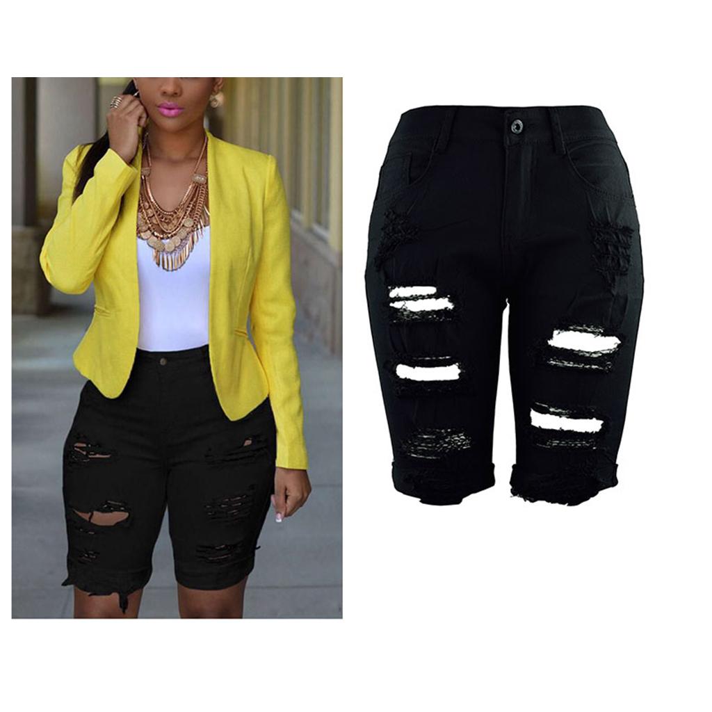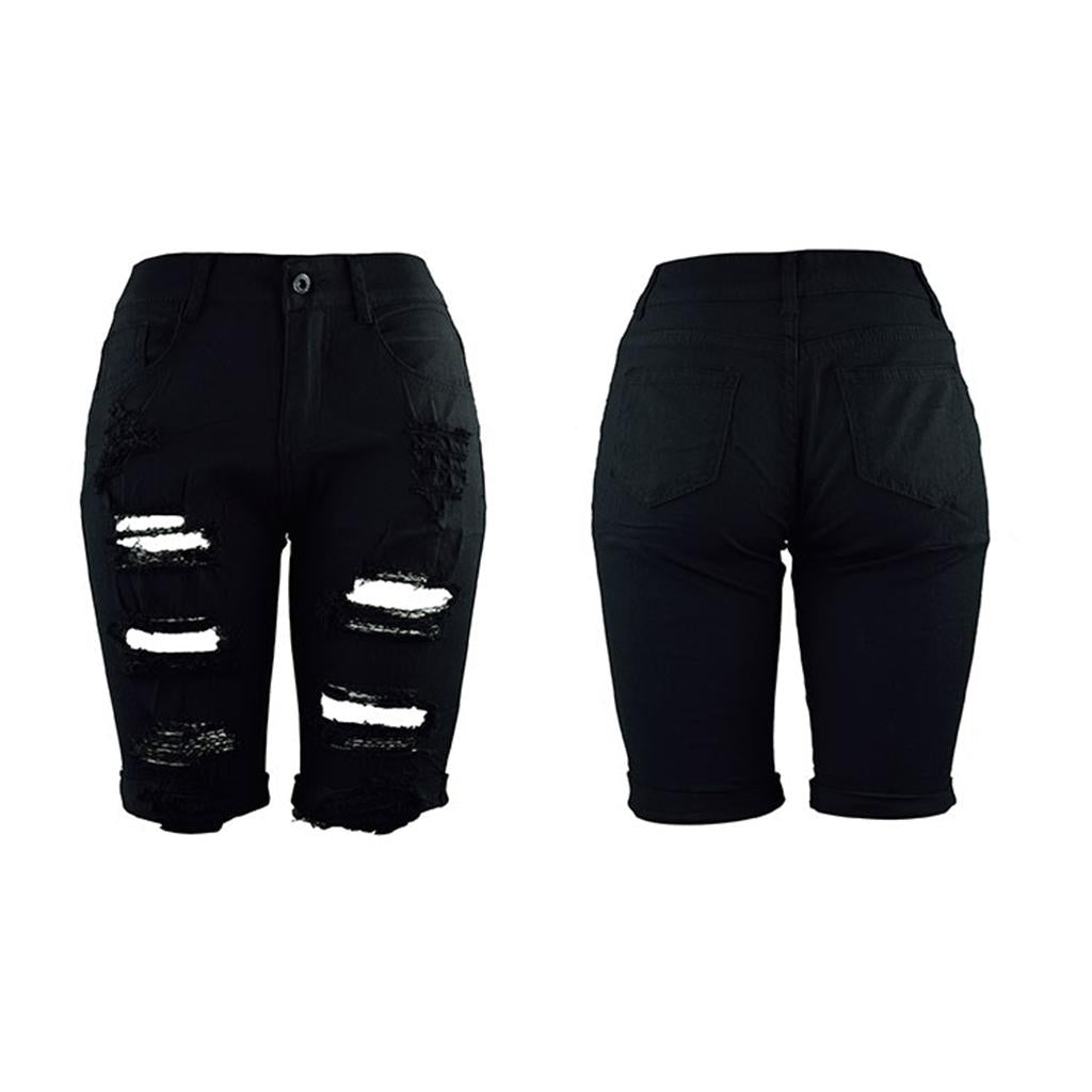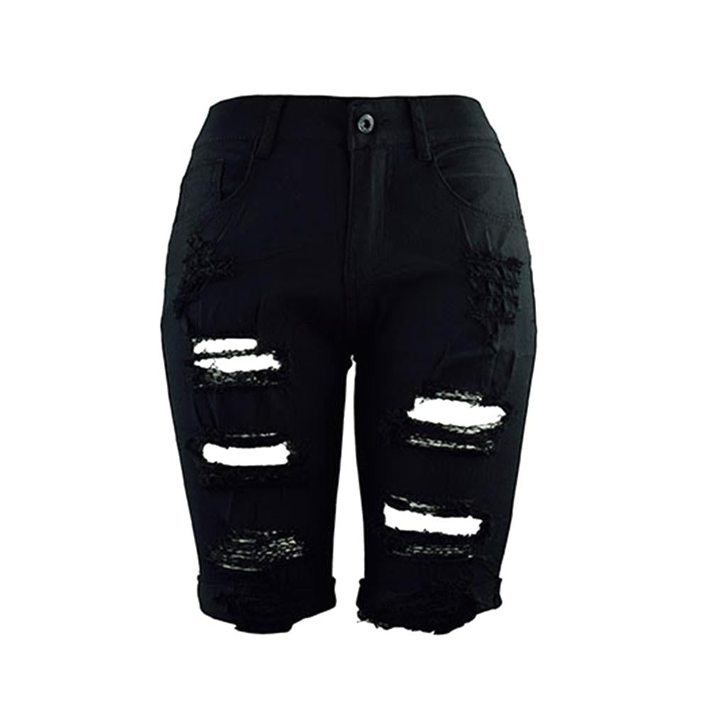 New Women Elastic Hole Ripped Short Pants Denim Shorts Jeans L Black