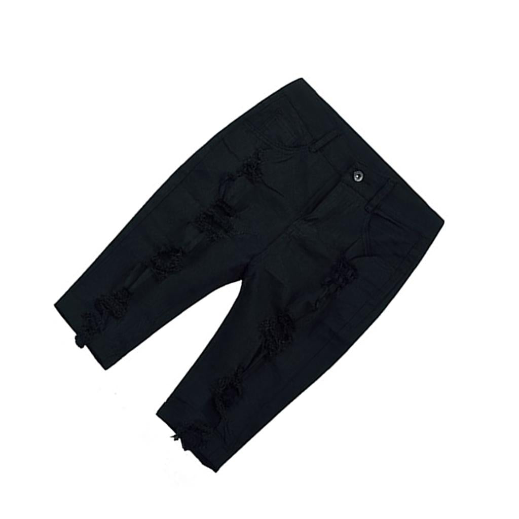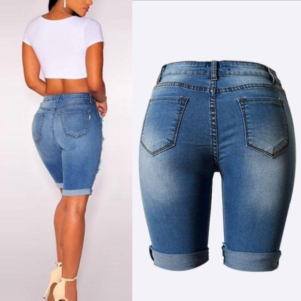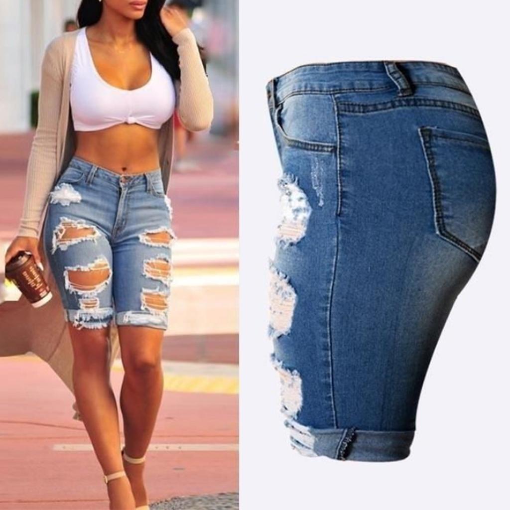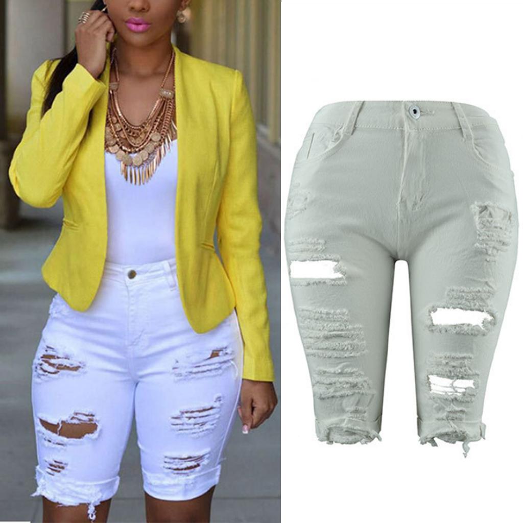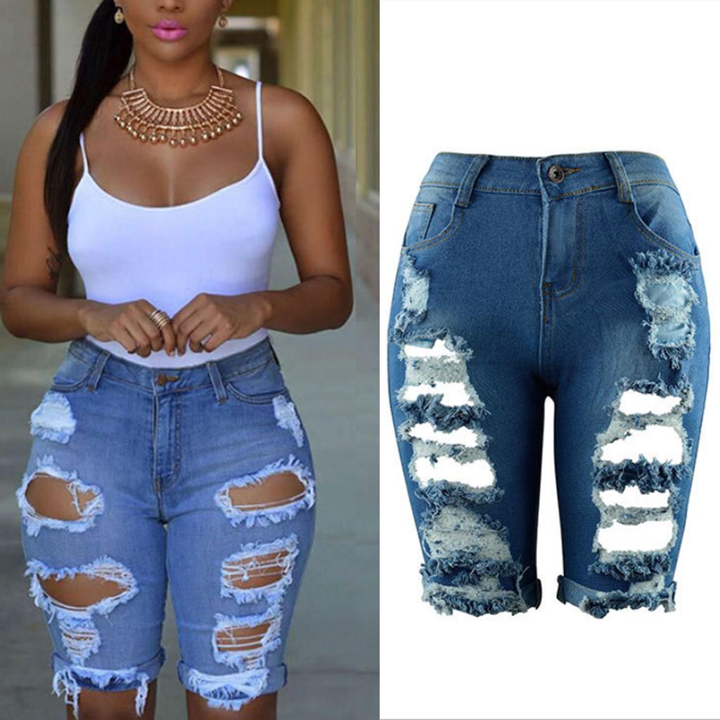 New Women Elastic Hole Ripped Short Pants Denim Shorts Jeans L Black