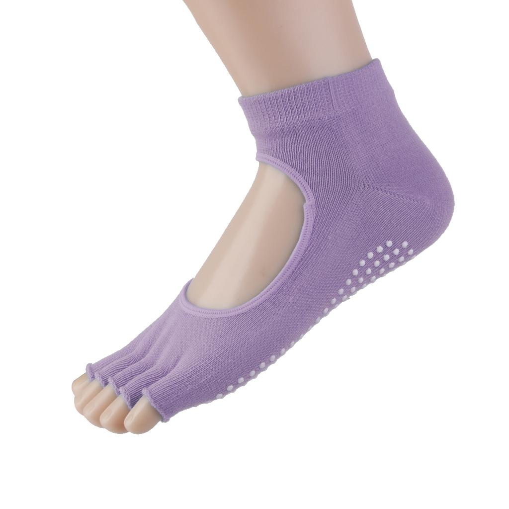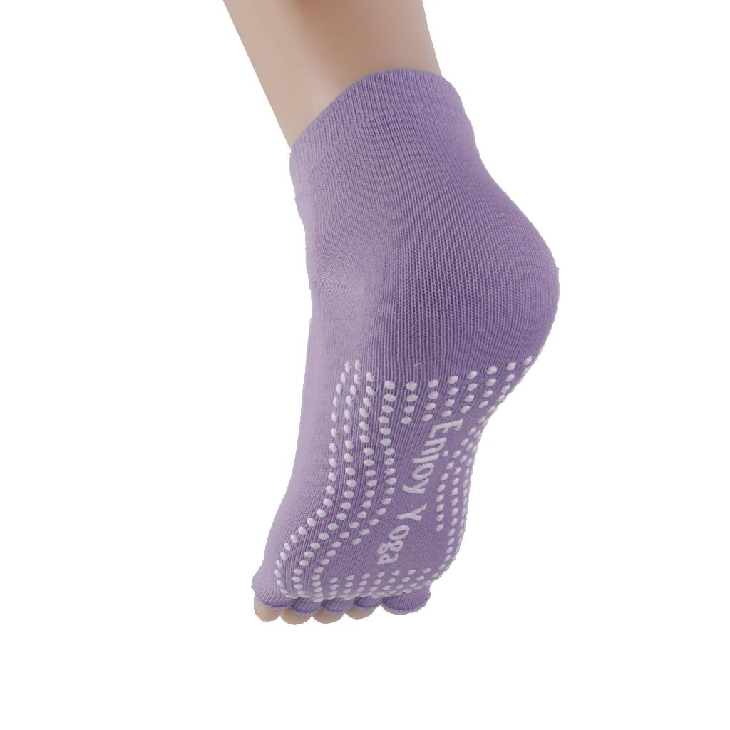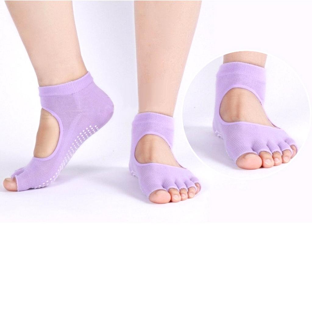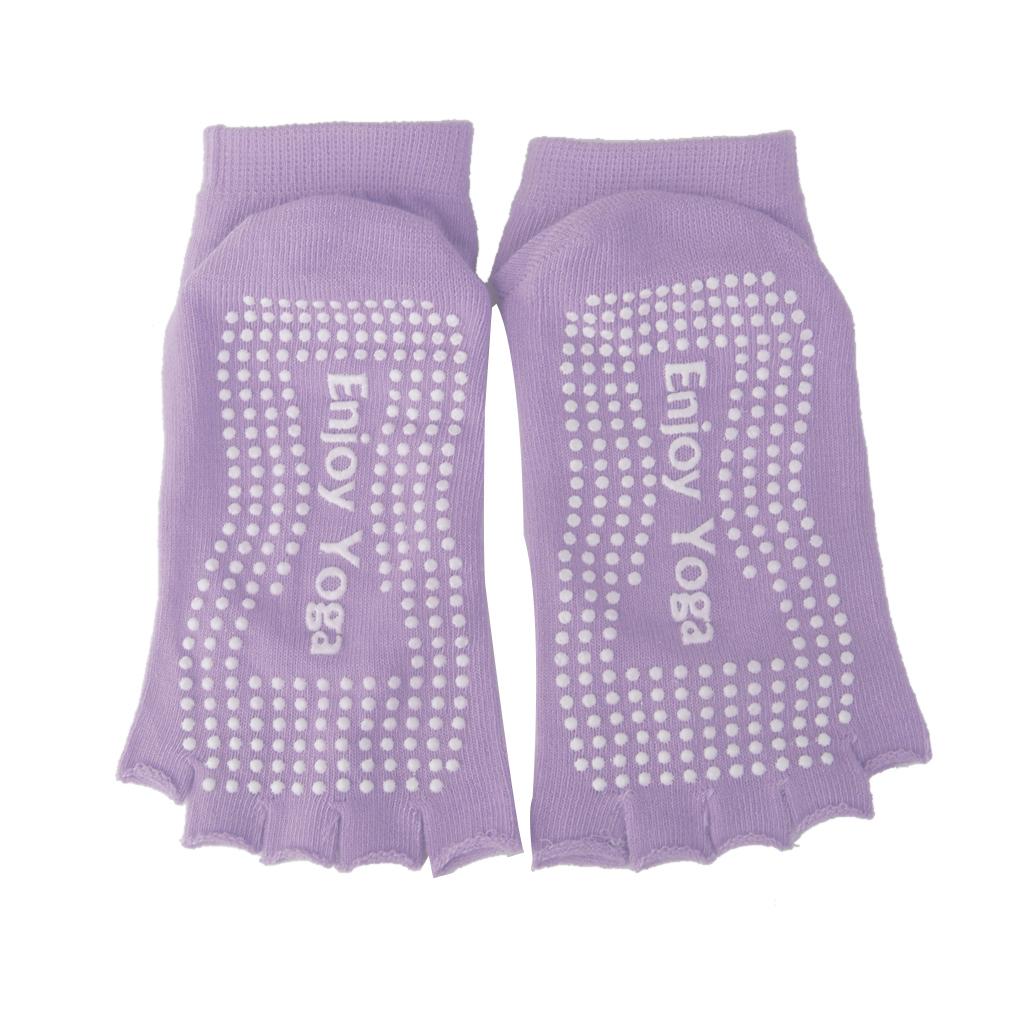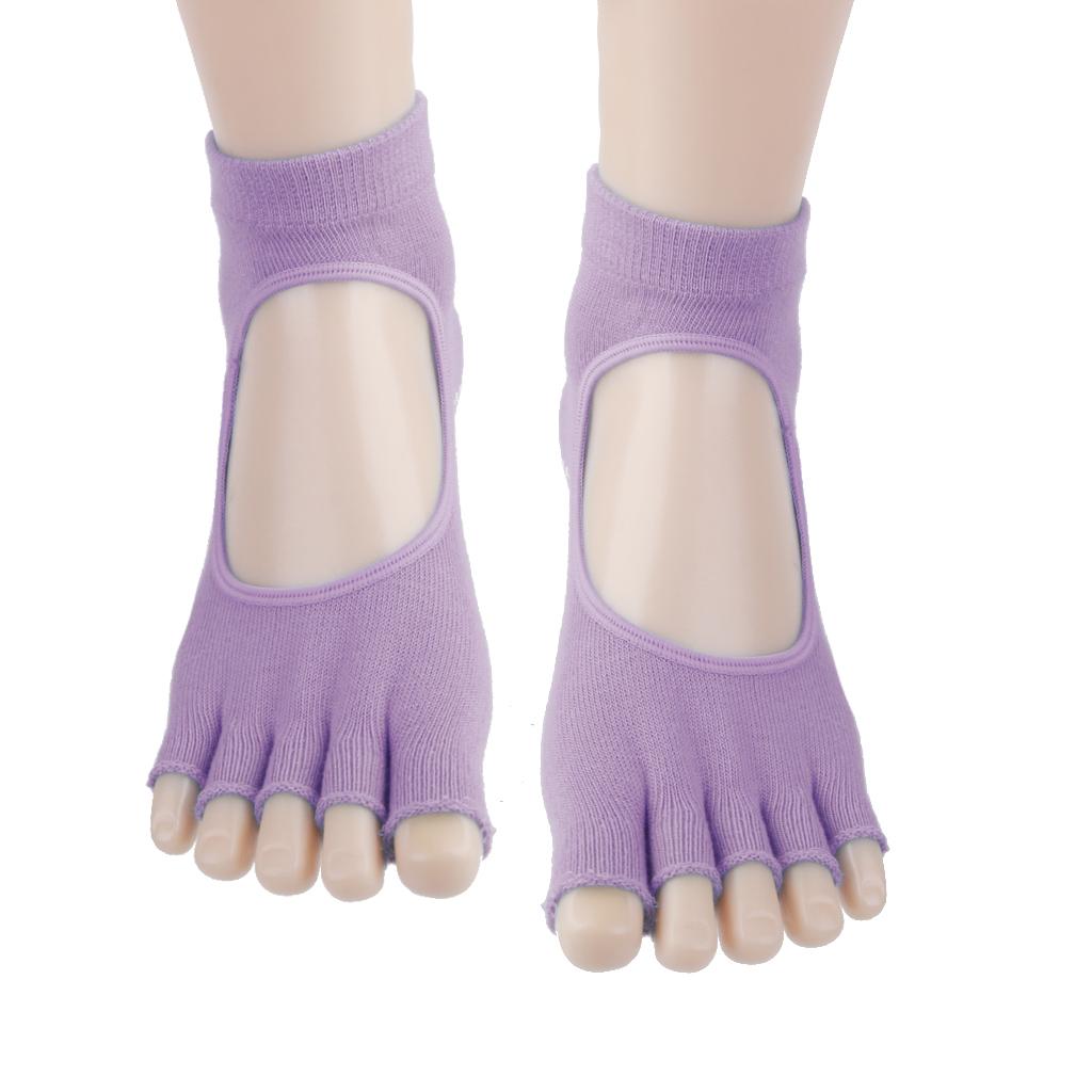 Pair Of Half Design Non Slip Washable Comfortable Massage Barre Pilates Yoga Dance Toe Socks Purple