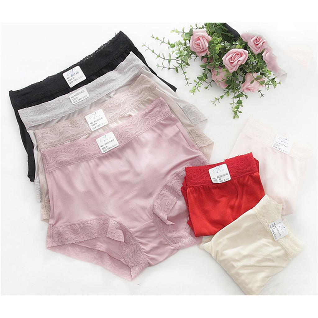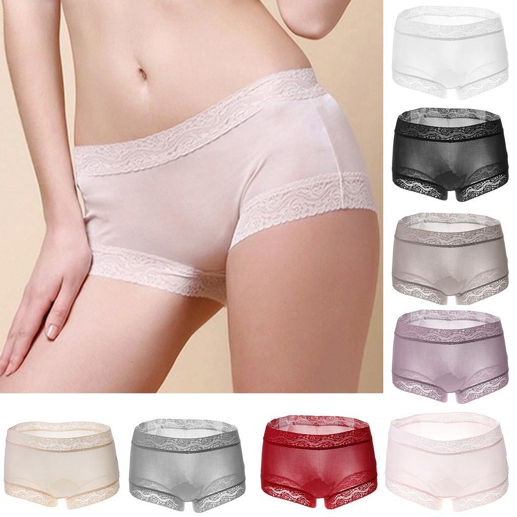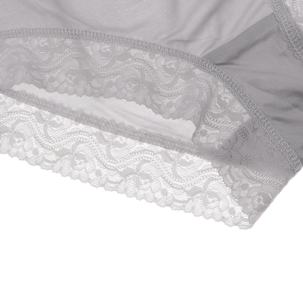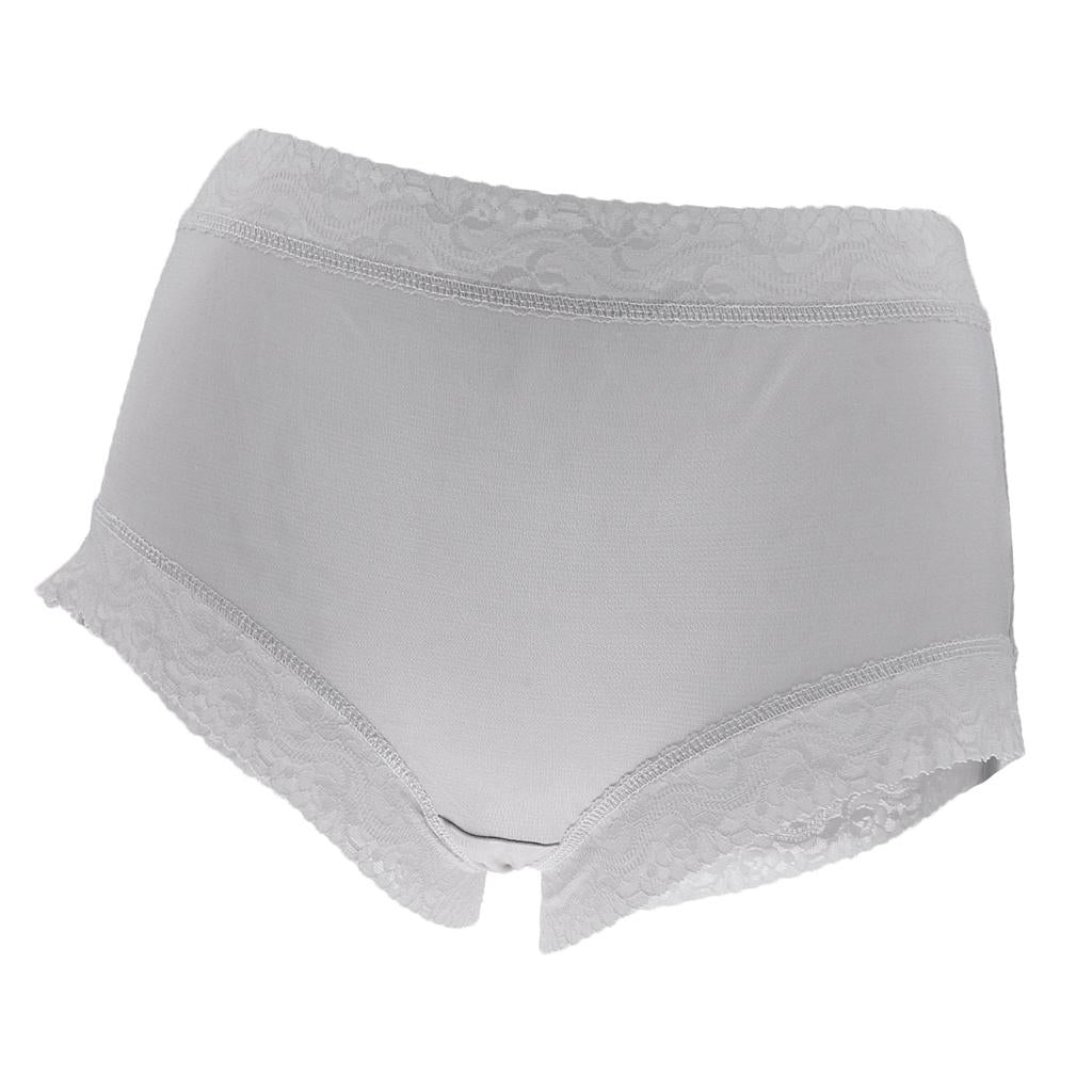 Phenovo Womens 100% Pure Silk Boyshorts Lace Panties Boxer XXL Grey