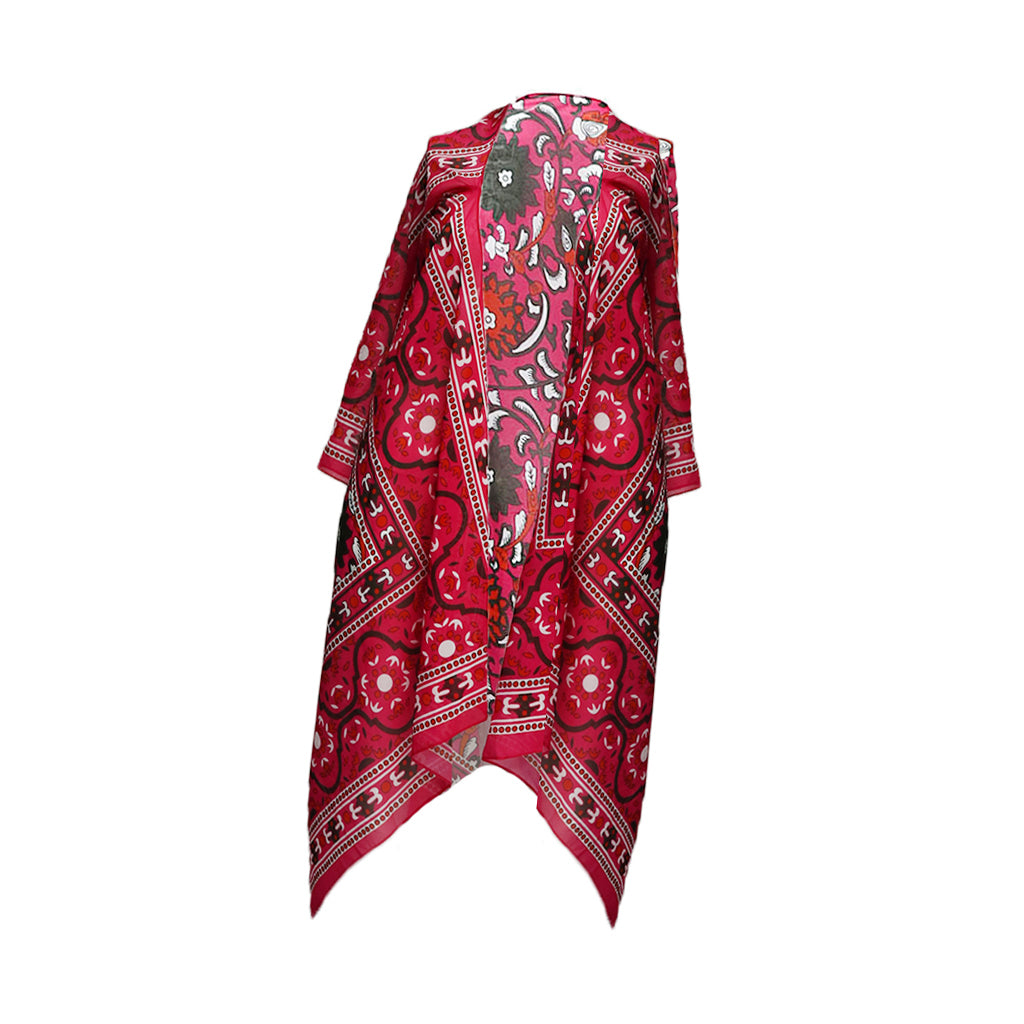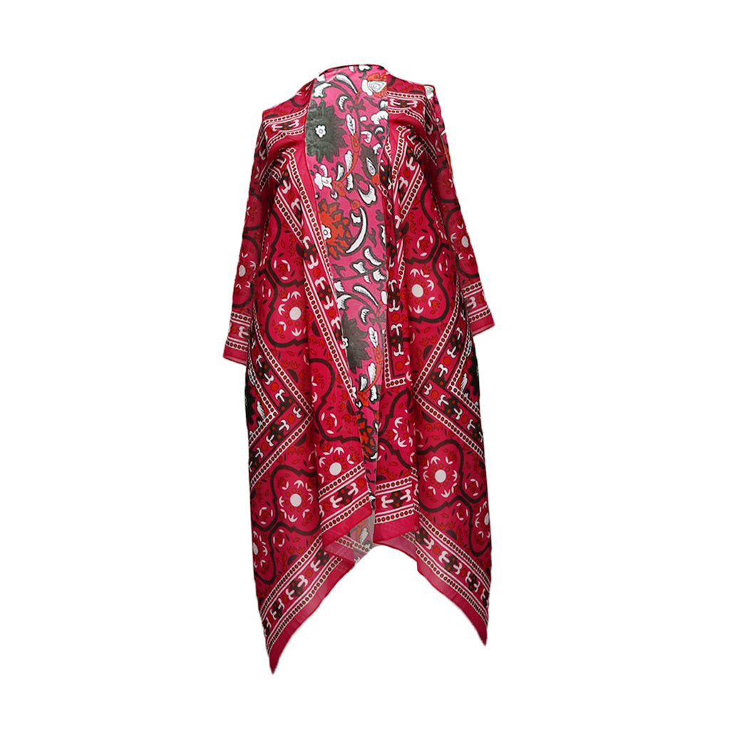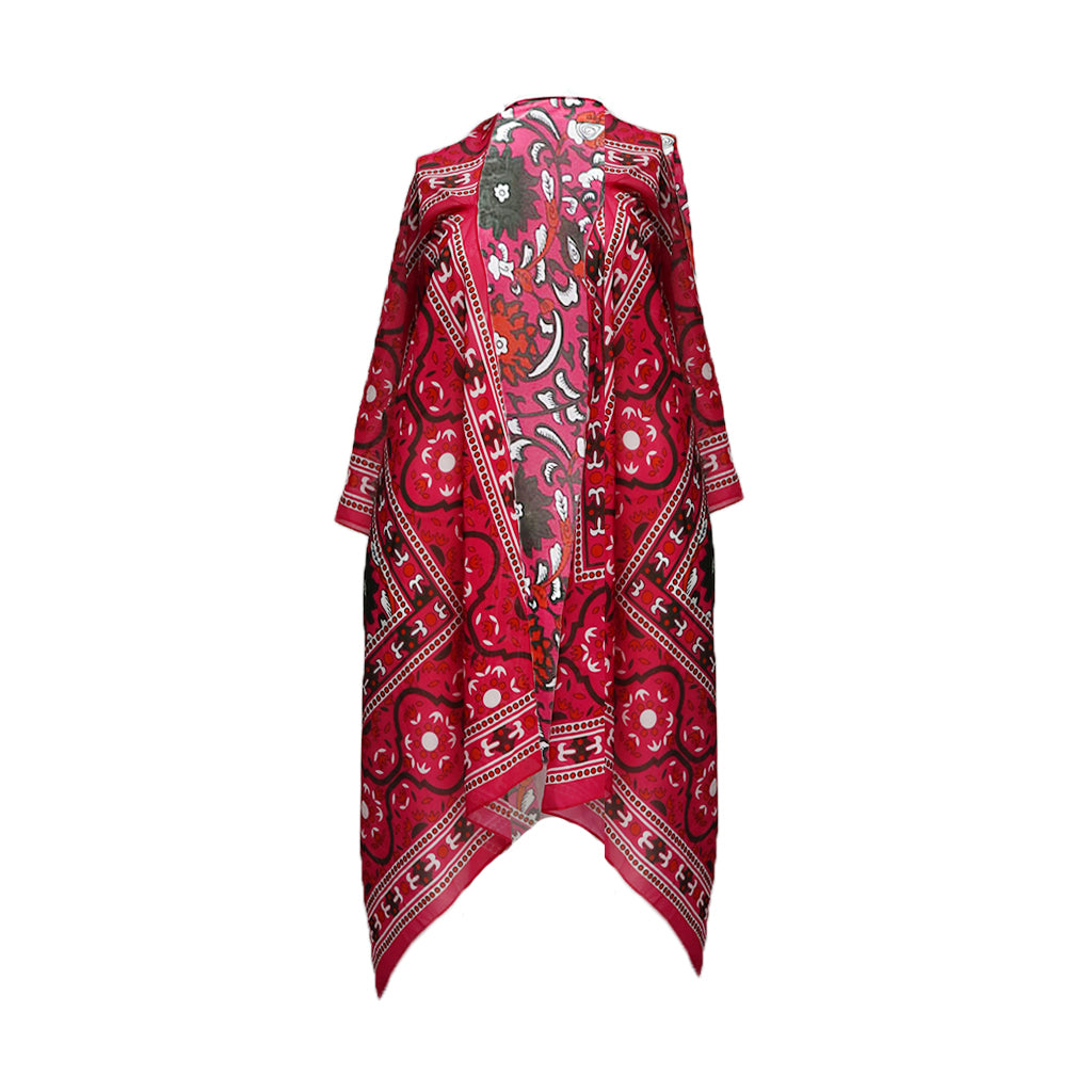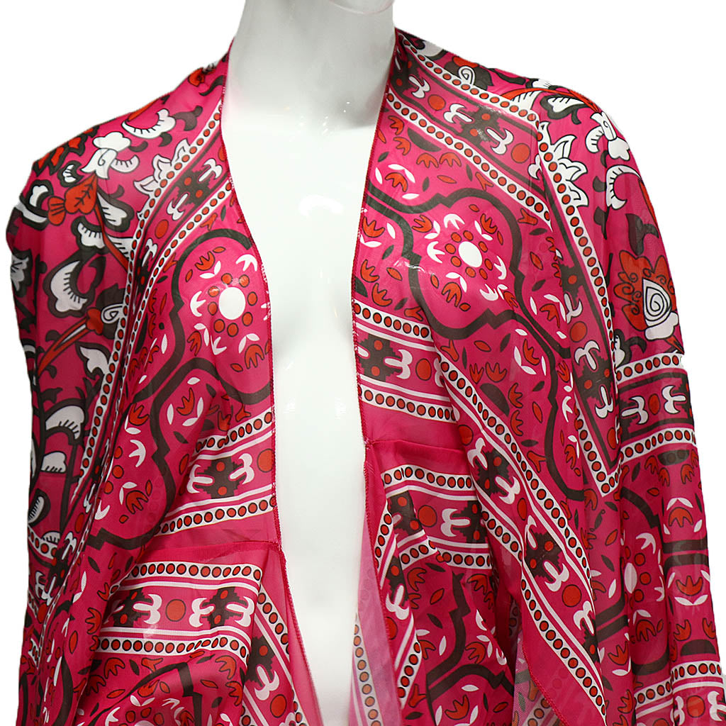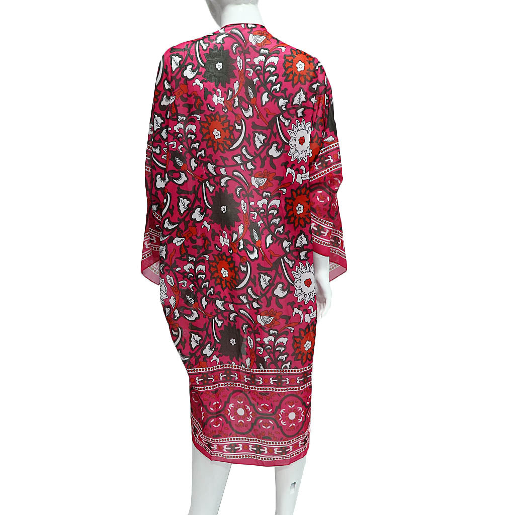 Red Fashion Flower Printing Chiffon Cardigan Coat Beach Cover UP S