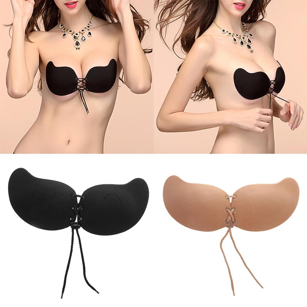 Silicone Adhesive Stick Push Up Strapless Invisible Backless Bra C Black