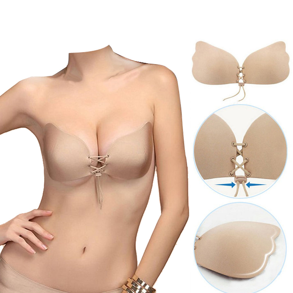 Silicone Self Adhesive Magic Push Up Strapless Invisible Bras Backless HOT D Beige