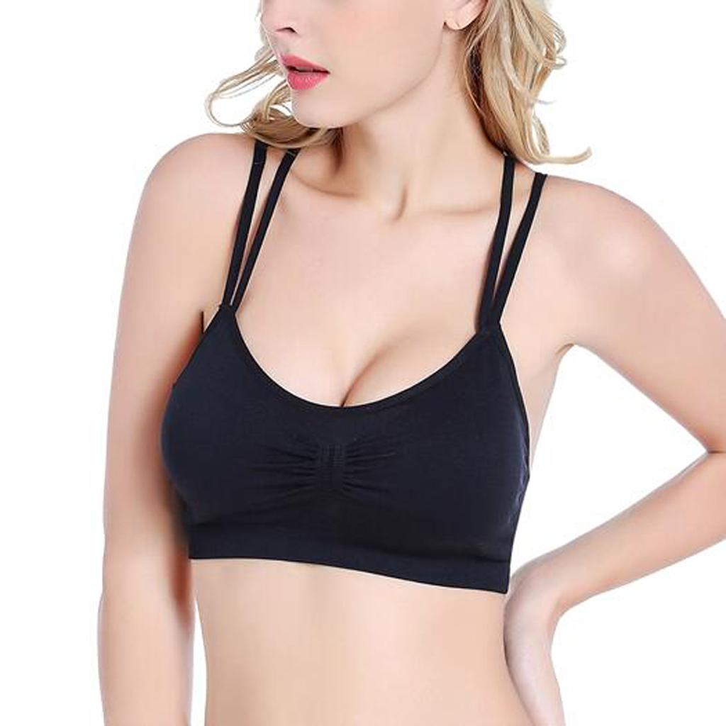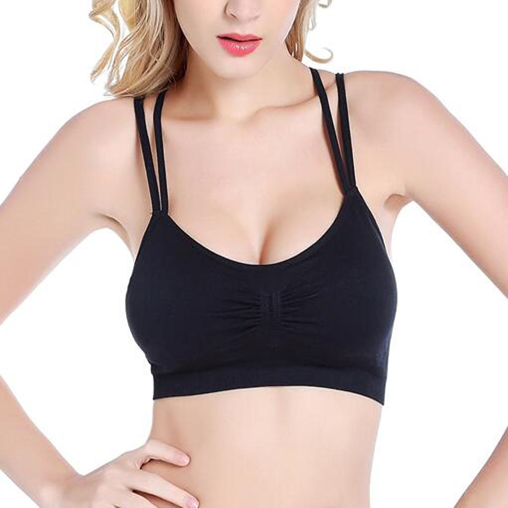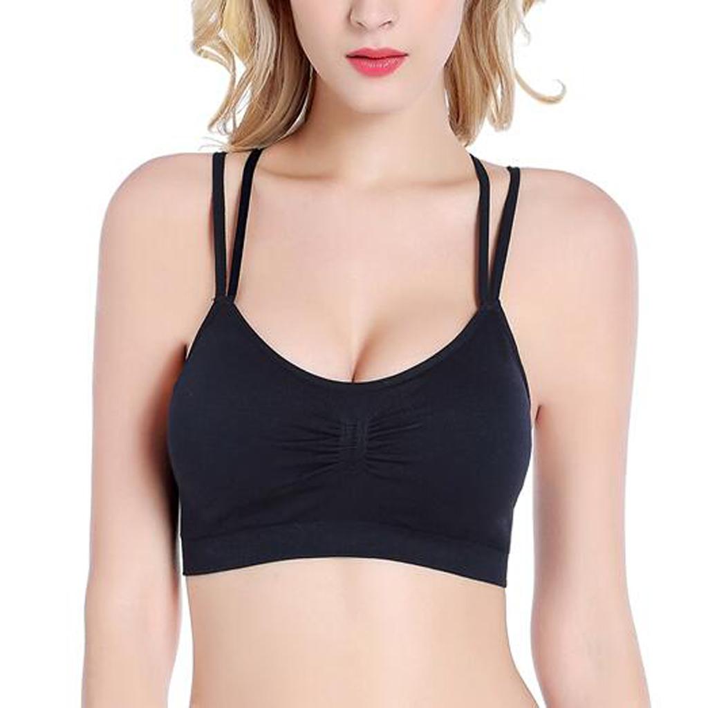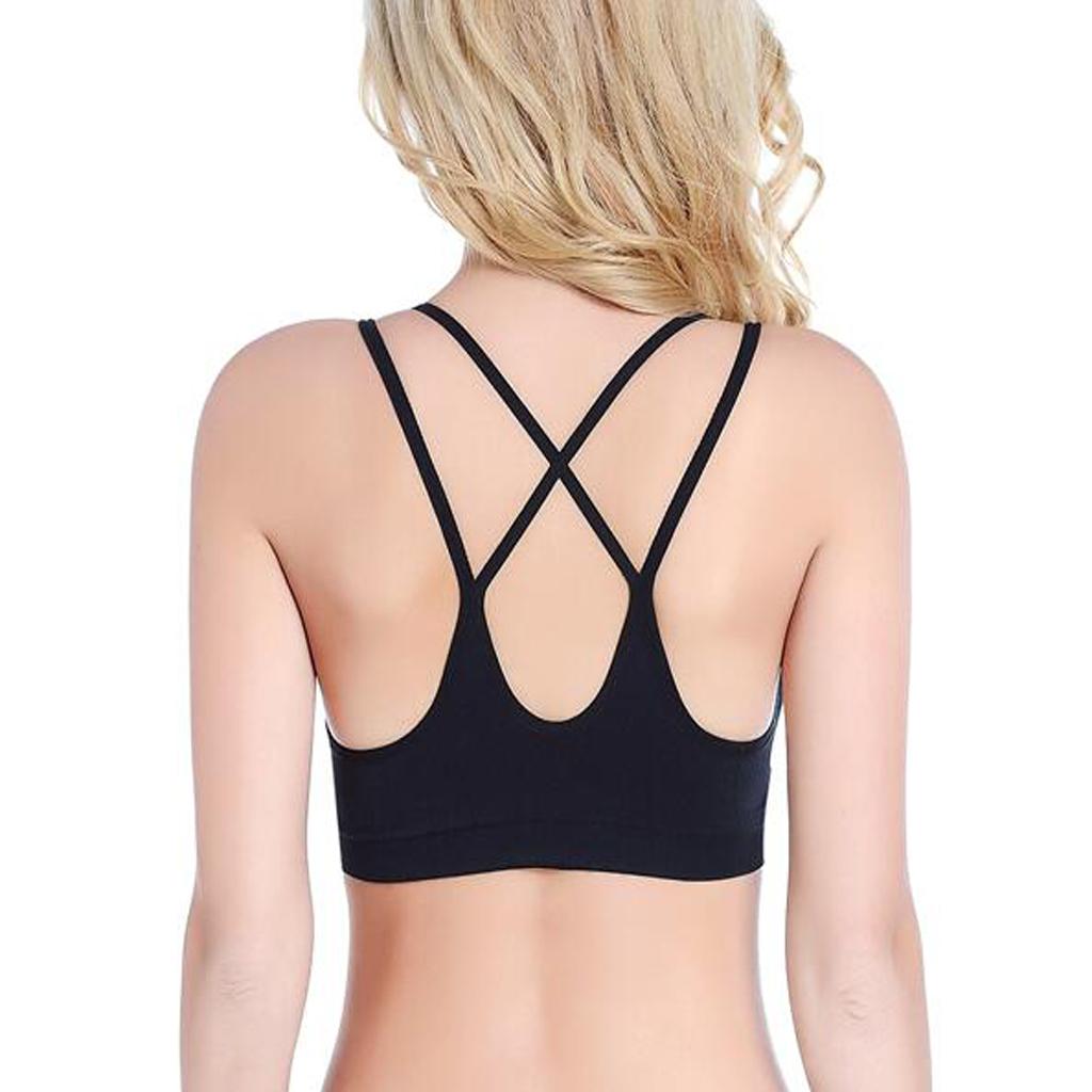 Strappy Criss-Cross Wire Free Gym Bra Yoga Bra for Women Black M