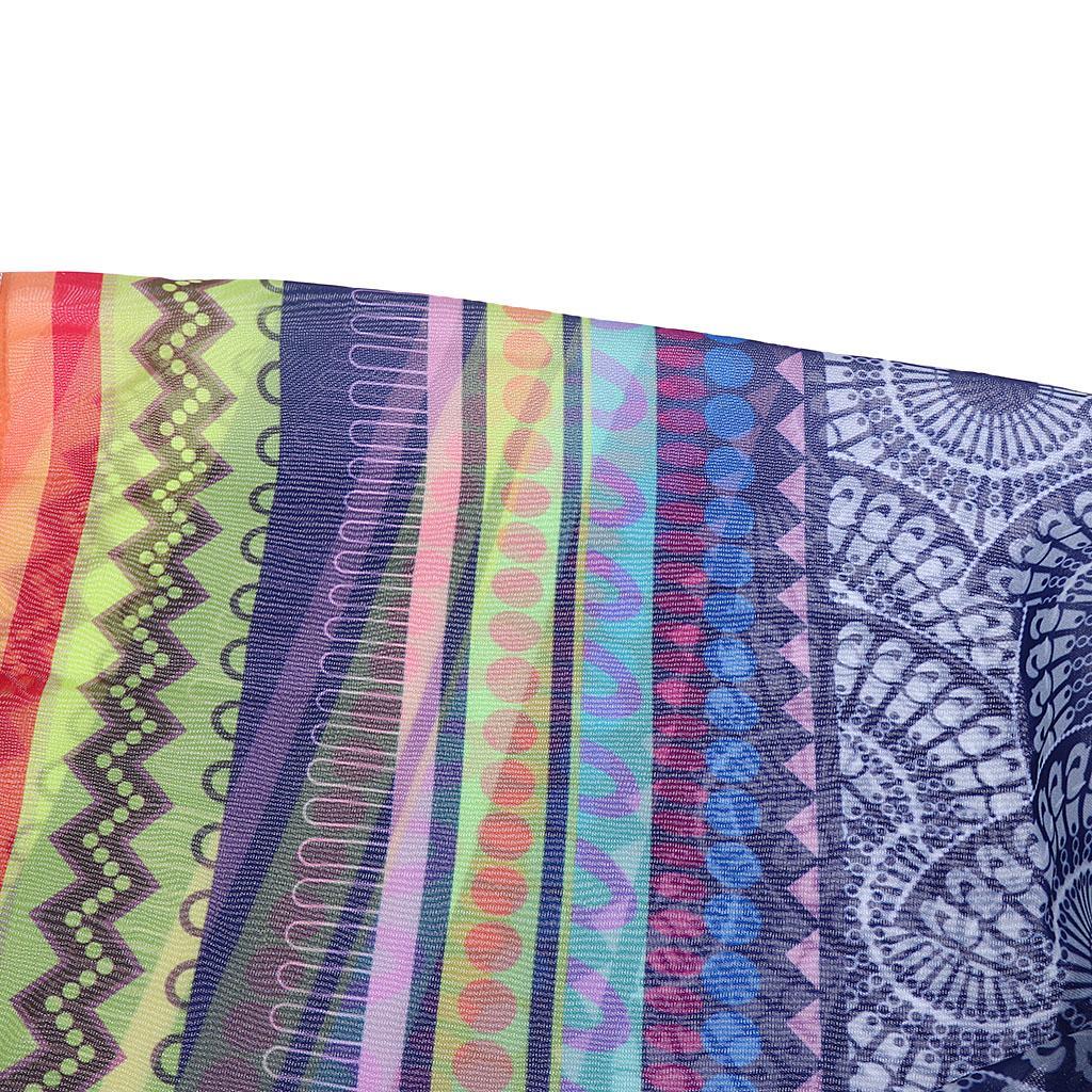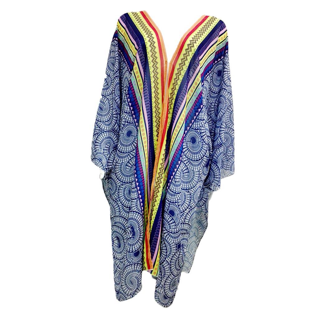 Striped Circle Fashion Flower Printing Asymmetrical Chiffon Cardigan Coat S