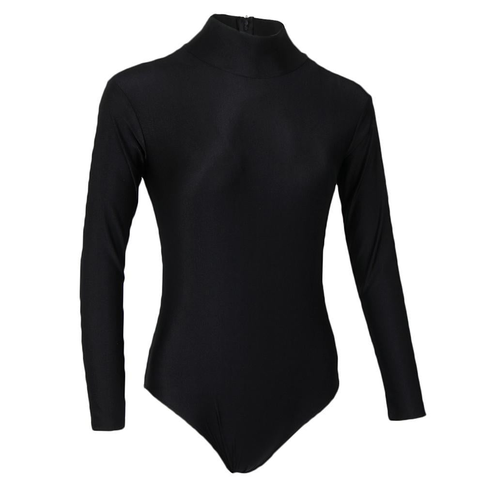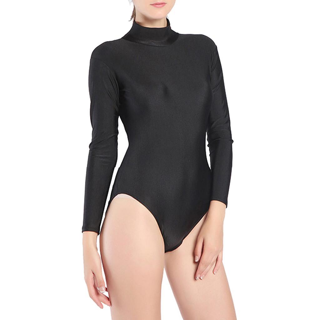One piece bodysuit jumpsuit, stretch leotard bodysuit long sleeve