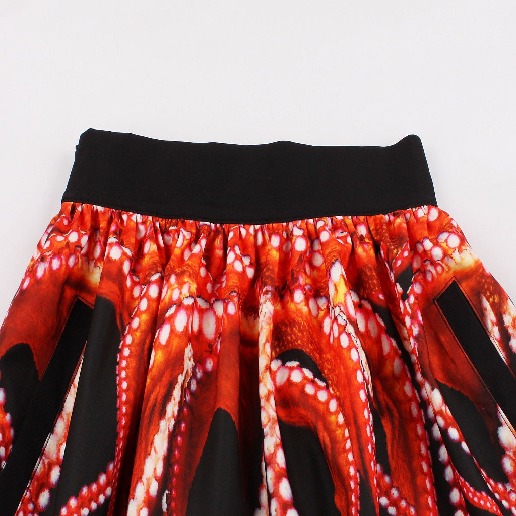 A-line, High Waist, Pleated, Knee Length, Elastic Waist at back, 3D Printed Skirt