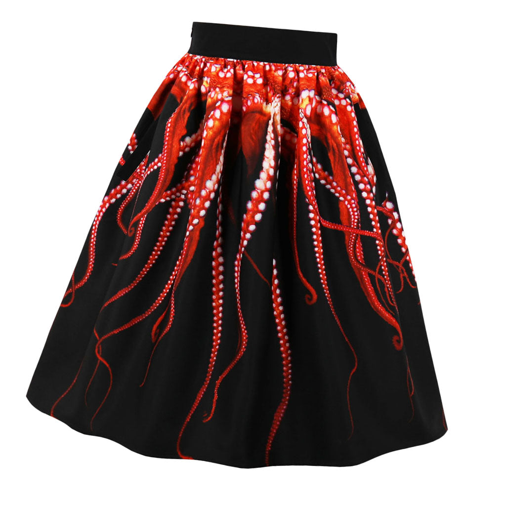 Women 3D Printed Casual High Waisted Knee Length Pleated A Line Skirts S