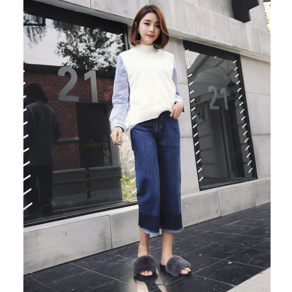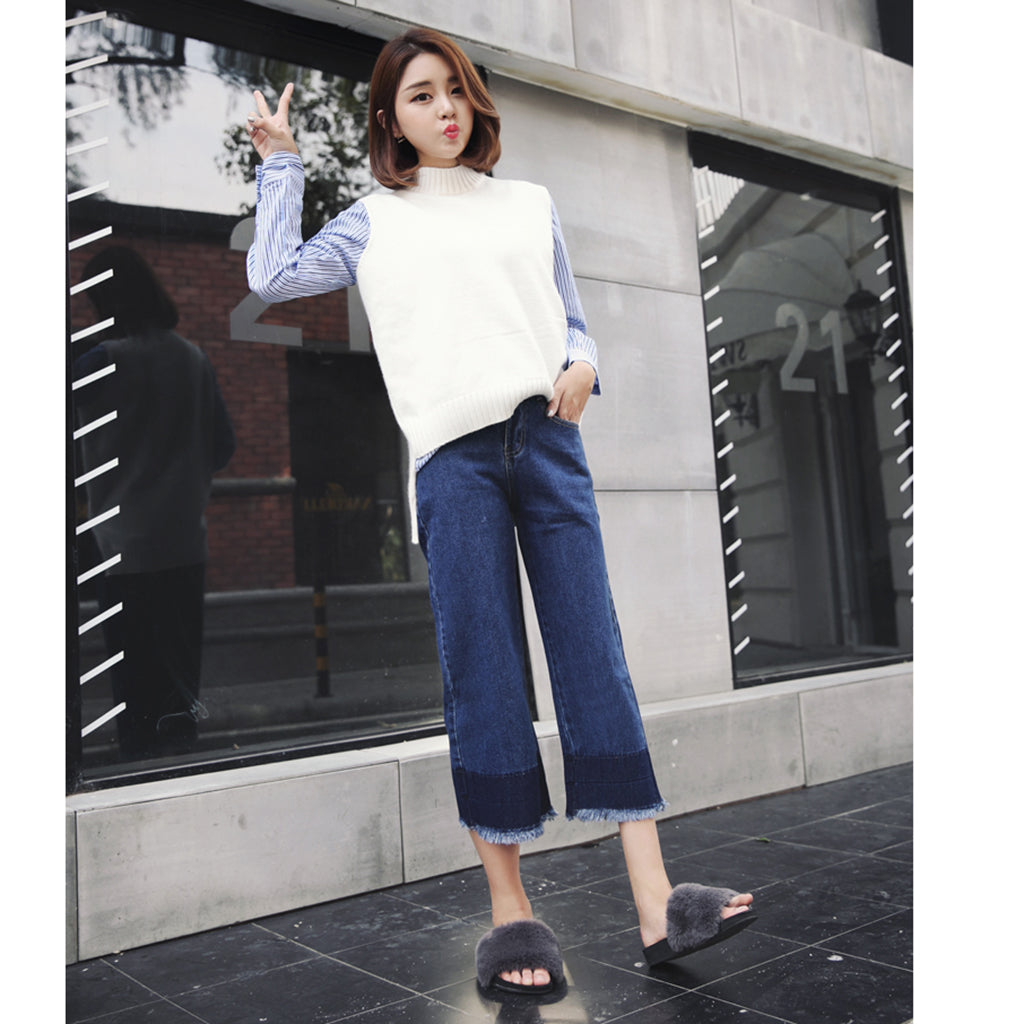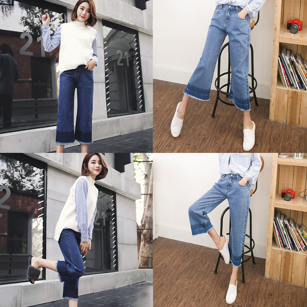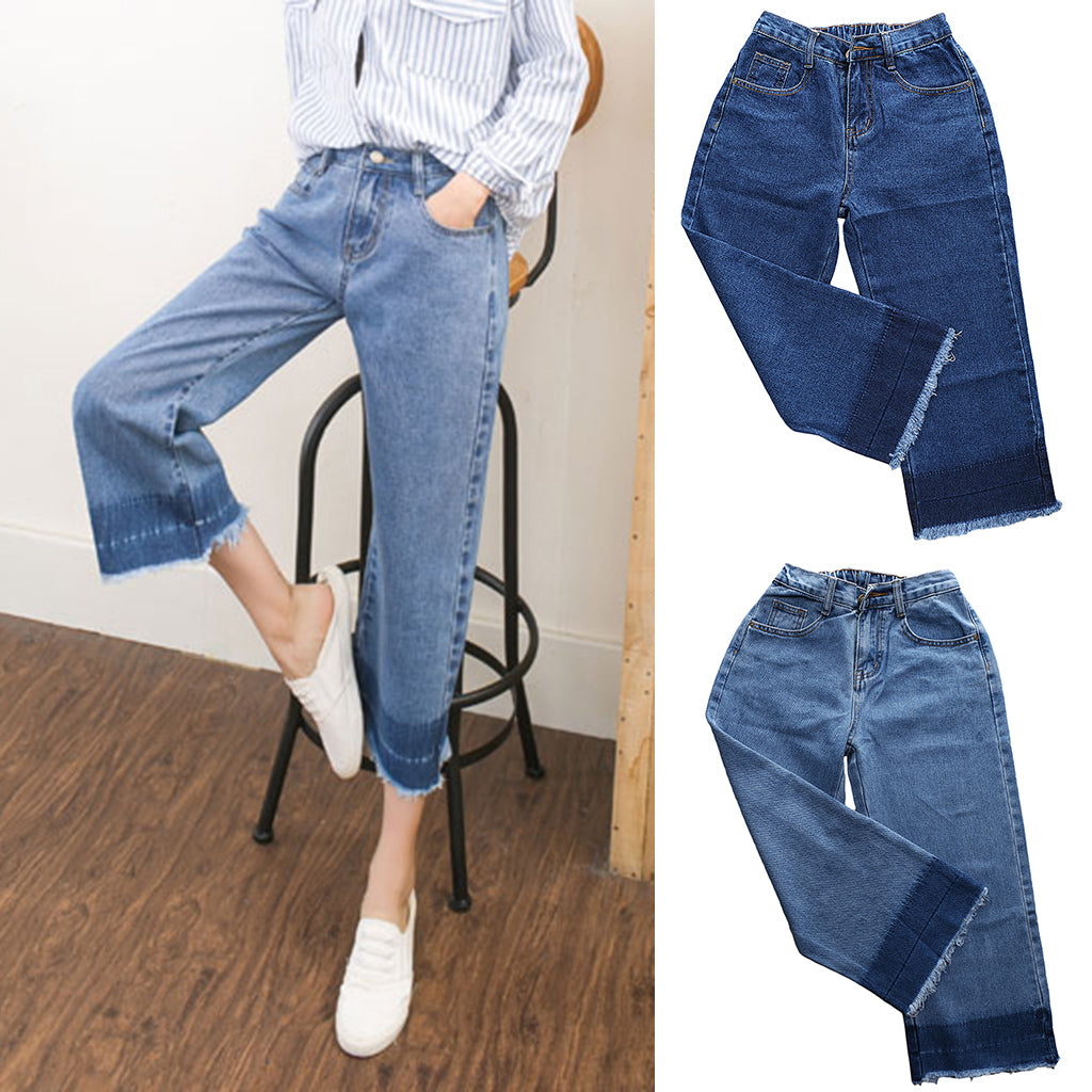 Women's High Waist Wide Leg Capri Demin Pants Jean.