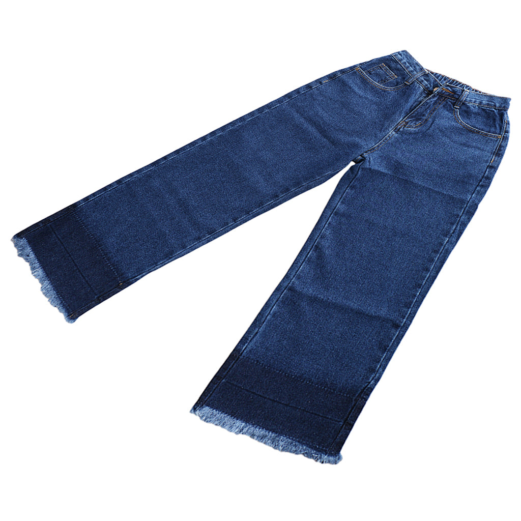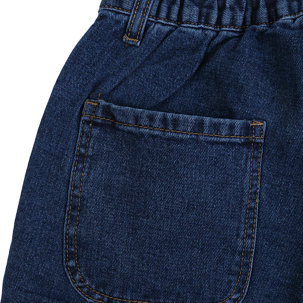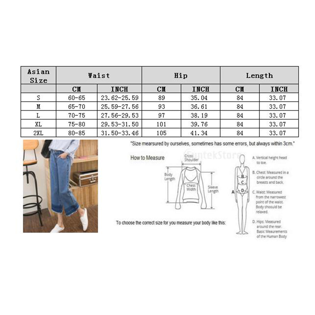 Women Casual Wide Leg Jeans Elastic Waist Pockets Denim Pants S Dark Blue