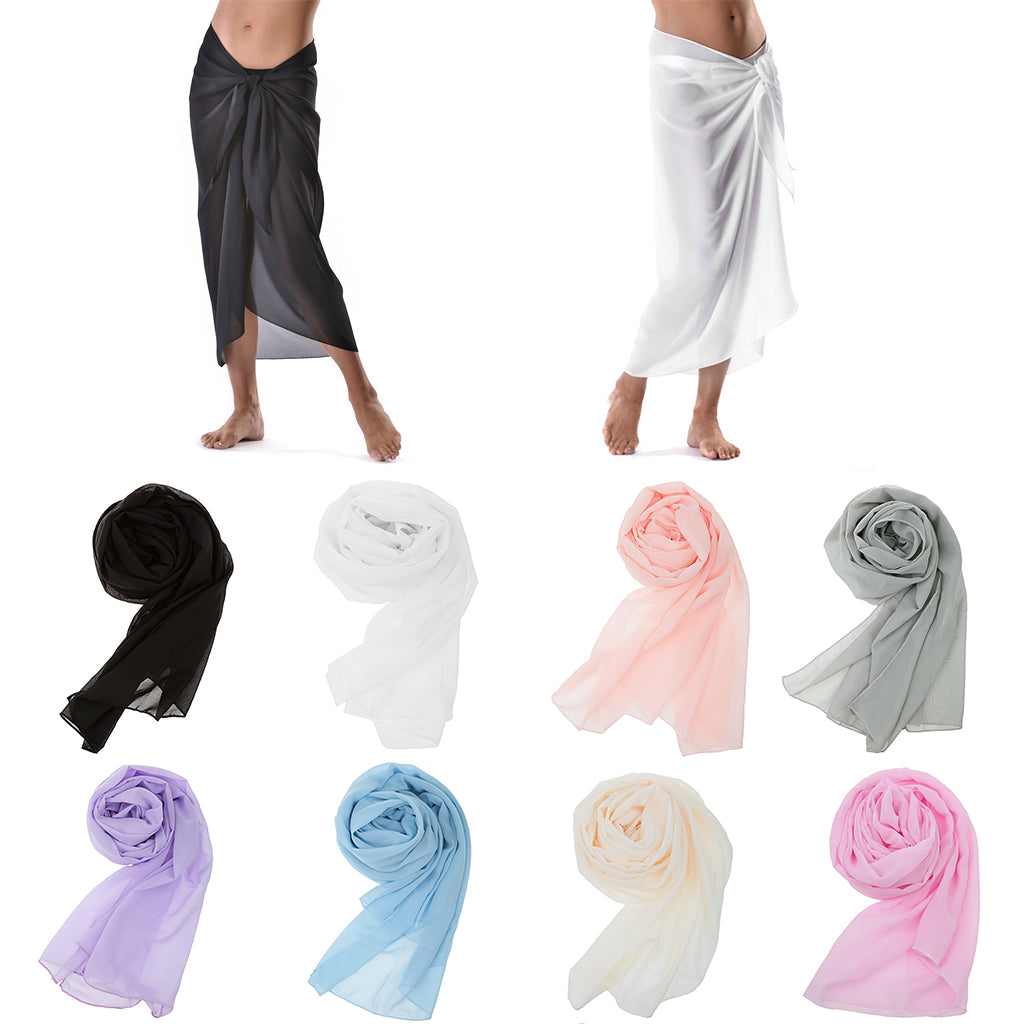 Women Chiffon Swimwear Pareo Scarf Beach Cover-Up Wrap Sarong Light Pink
