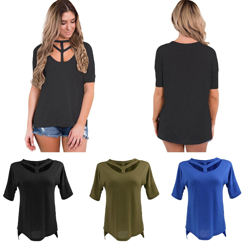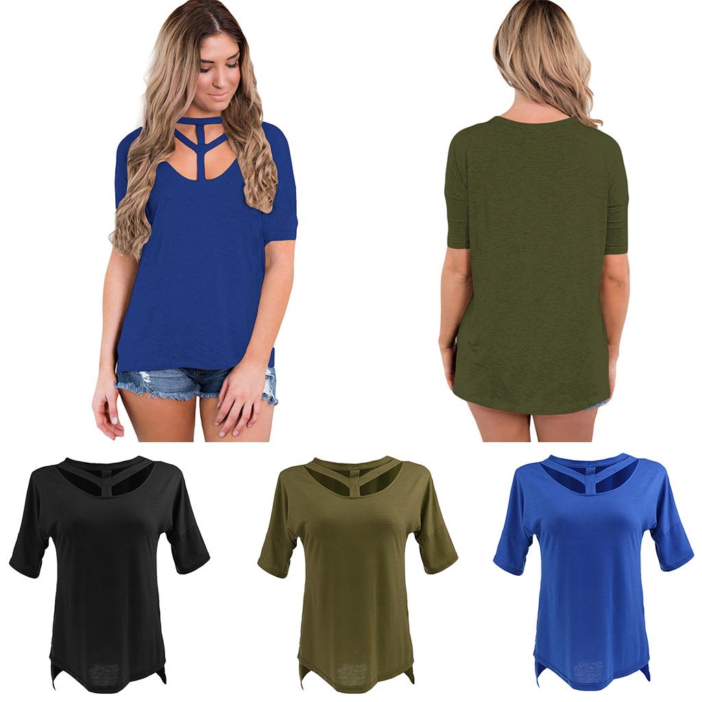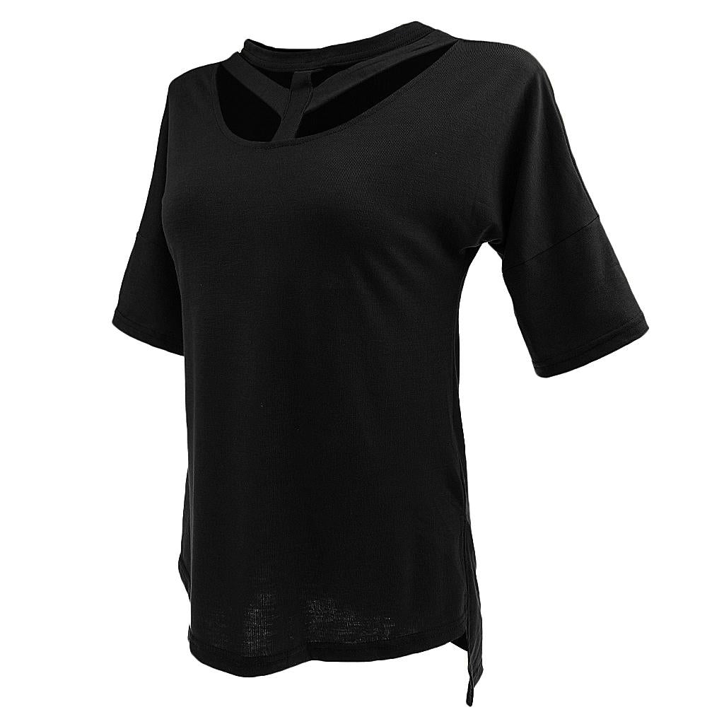 Women's Short Sleeve Cut Out T Shirt Side Slit Casual Blouse Tops.