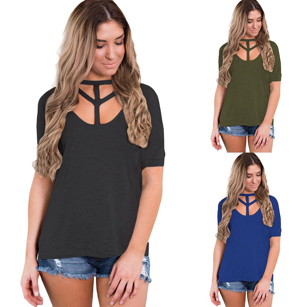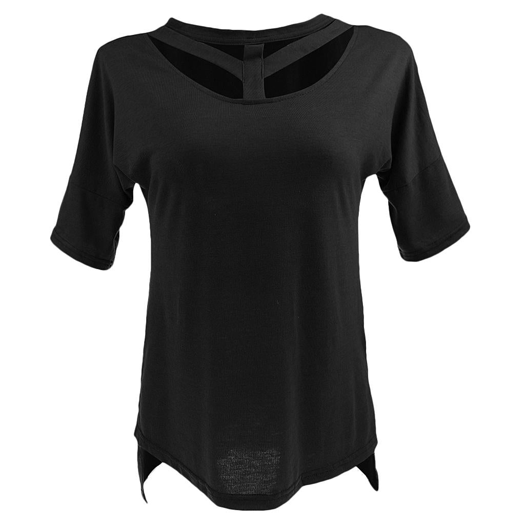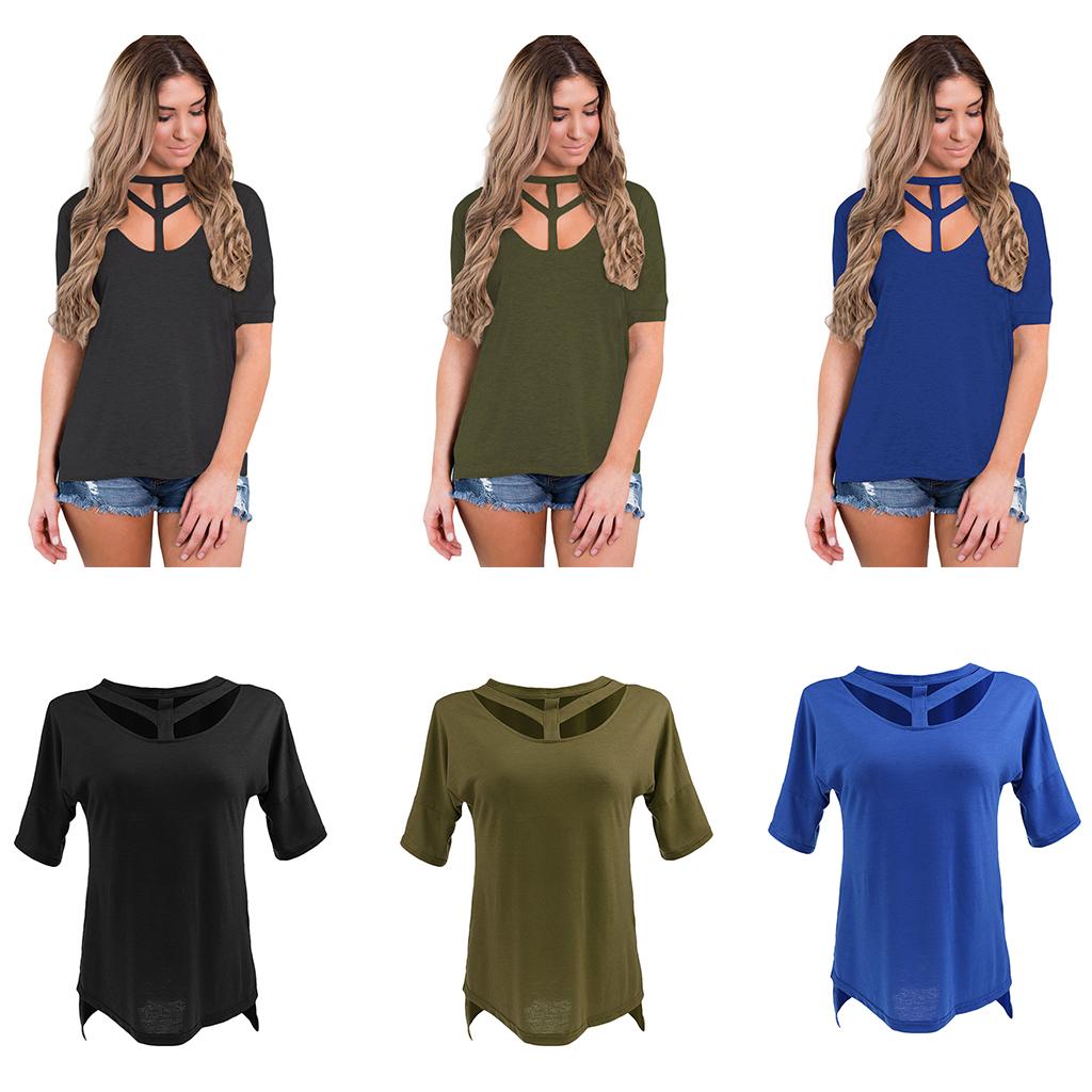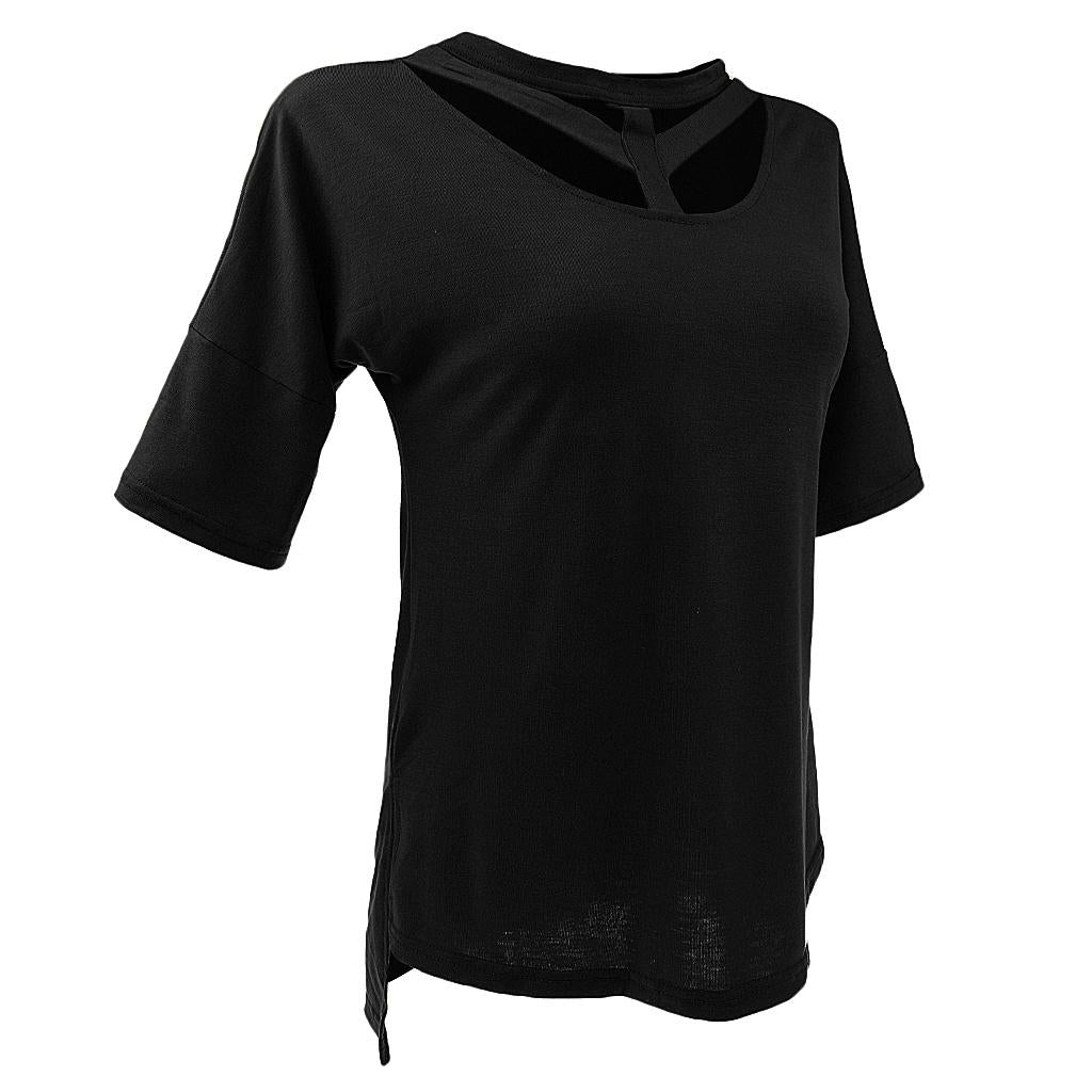 Women's Short Sleeve Cut Out T Shirt Side Slit Casual Blouse Tops.