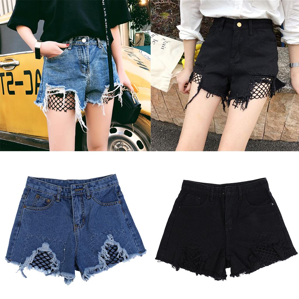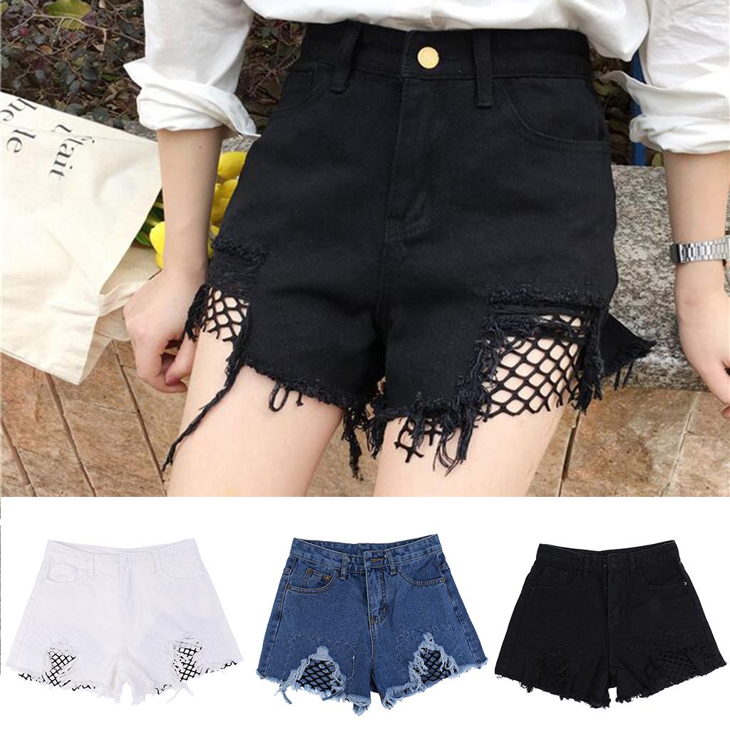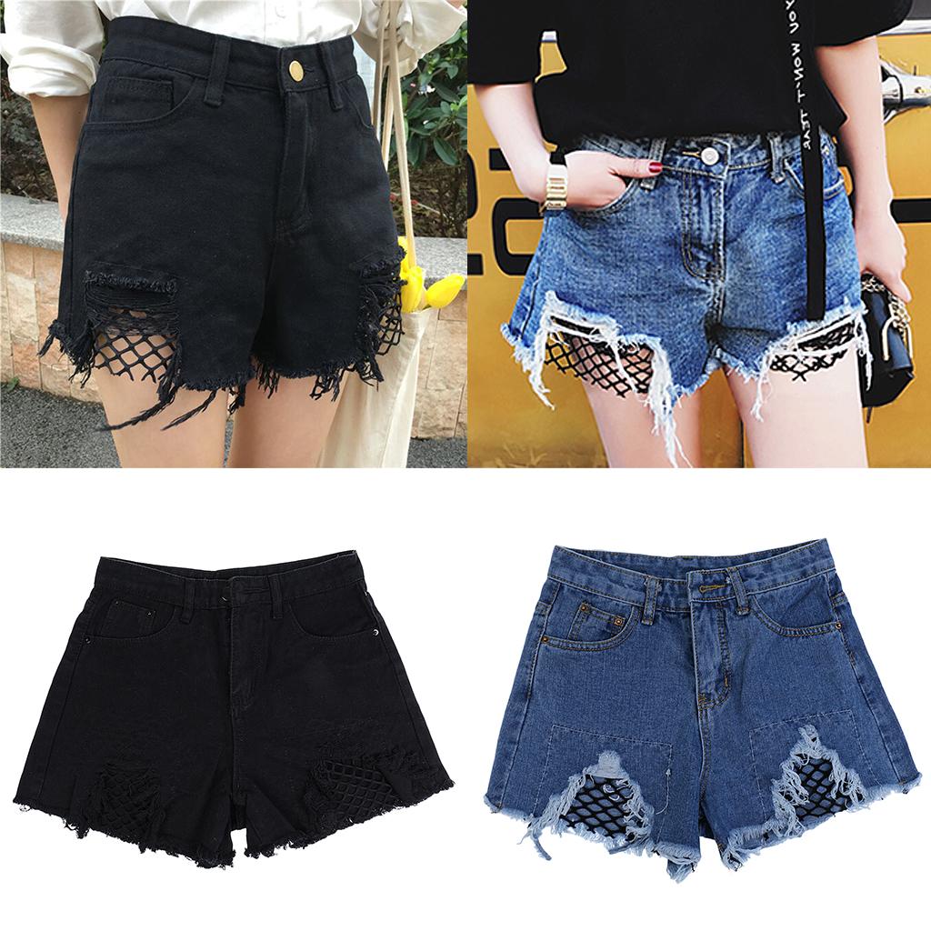 Women Distressed Cut Off Ripped Jean Shorts High Waist Denim Shorts S Blue