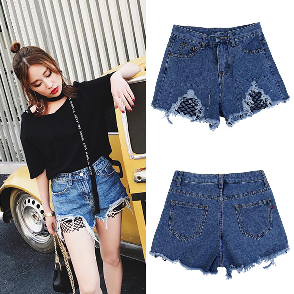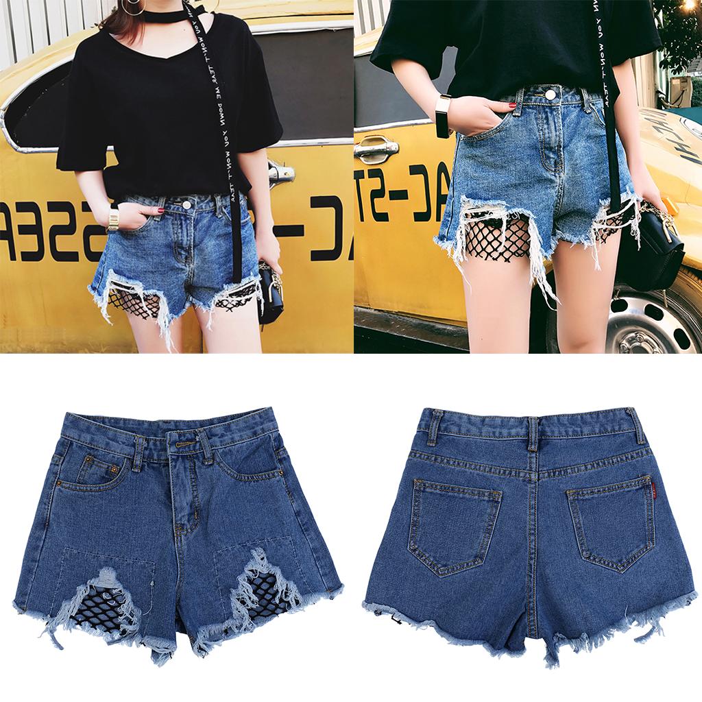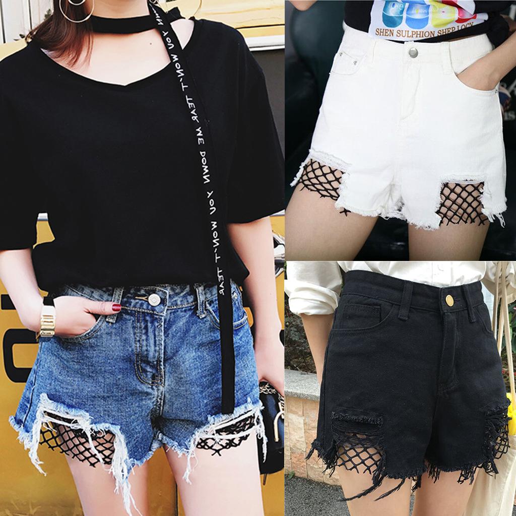 Women Distressed Cut Off Ripped Jean Shorts High Waist Denim Shorts S Blue