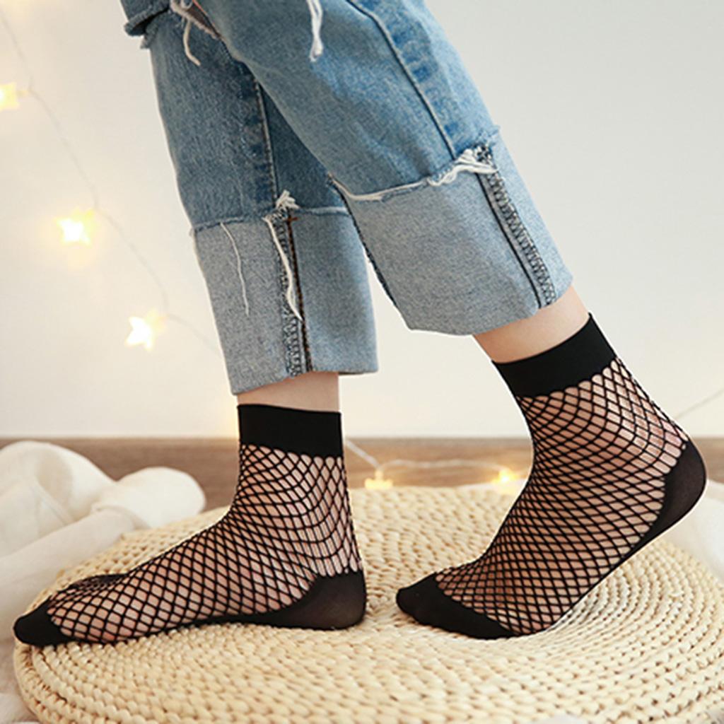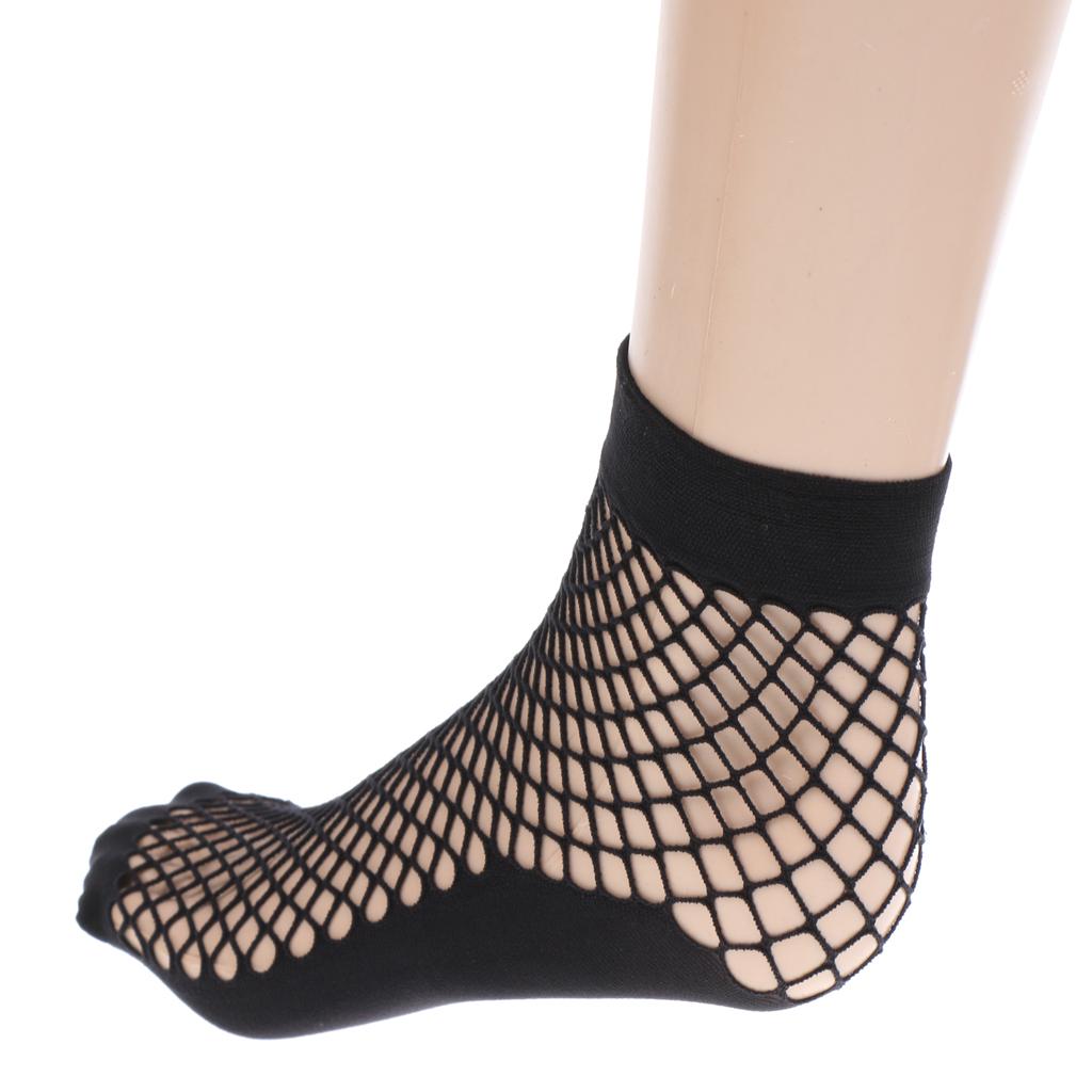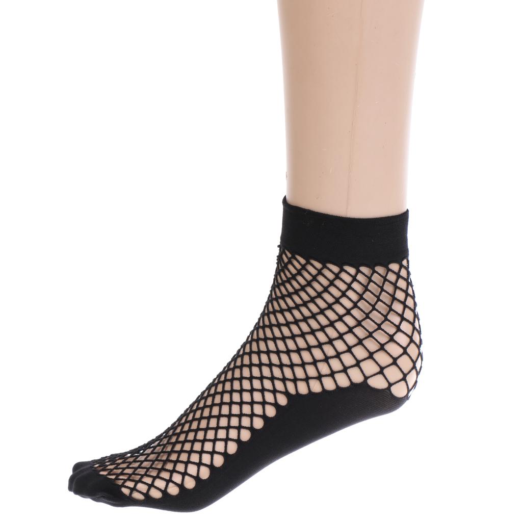 Women Fishnet Ankle High Socks Mesh Lace Pearl Short Black Socks with soles