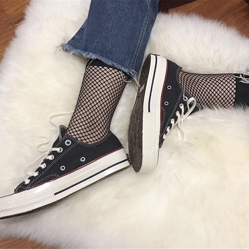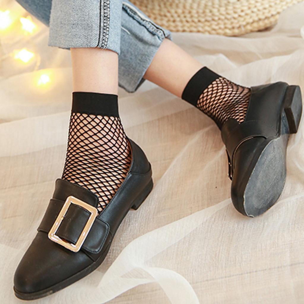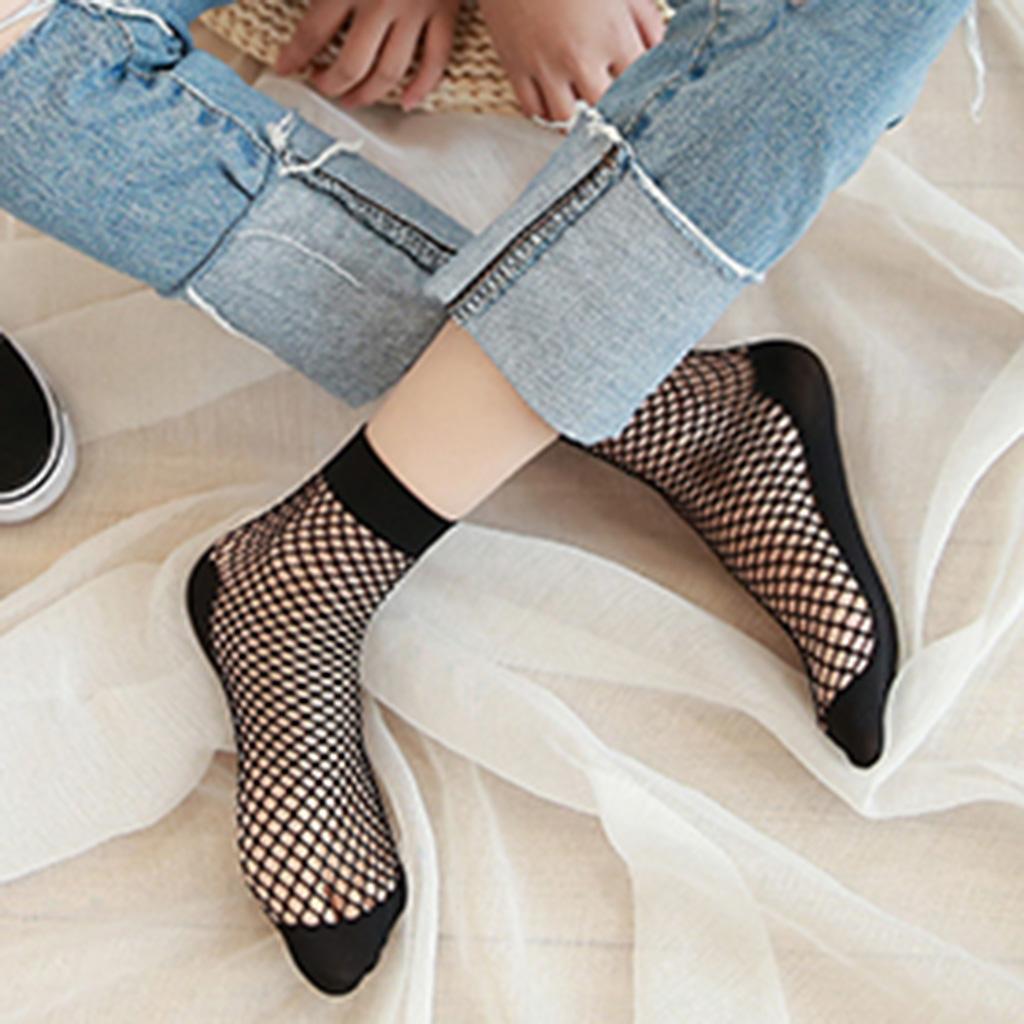 Women Fishnet Ankle High Socks Mesh Lace Pearl Short Black Socks with soles
