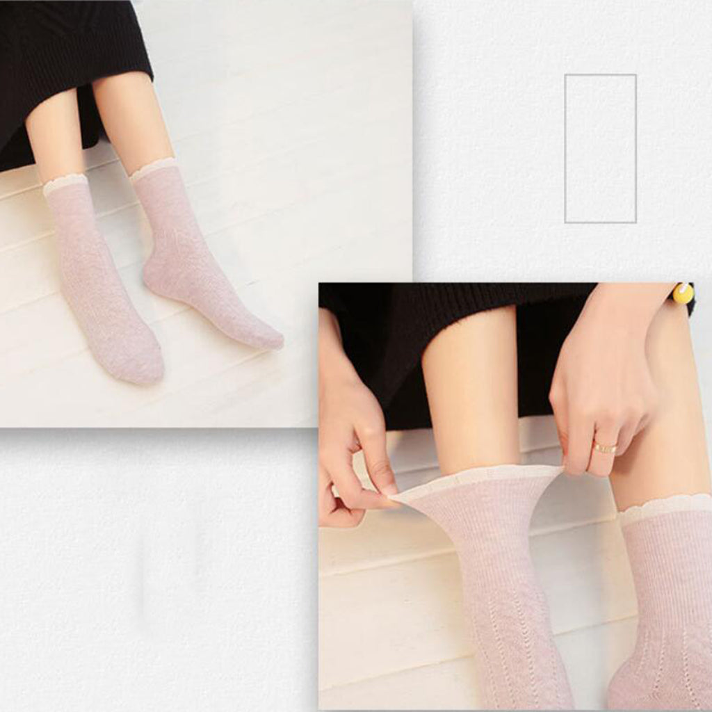 Solid lace edge women ankle socks